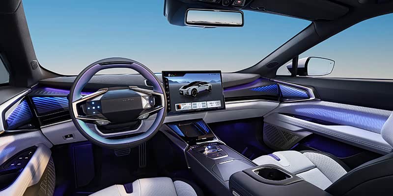 在内饰方面,高合HiPhi Z依然延续了机甲设计语言,新车没有配备仪表盘,而是通过HUD抬头显示以及中控左边区域显示行车信息。车内最大的亮点莫过于装有机械臂可旋转可位移的超大尺寸中控屏,官方将这套交互系统称之为HiPhi Bot,它能听音识位,通过机械臂将中控屏幕转到合适的角度和位置,还可以根据音乐节奏律动。