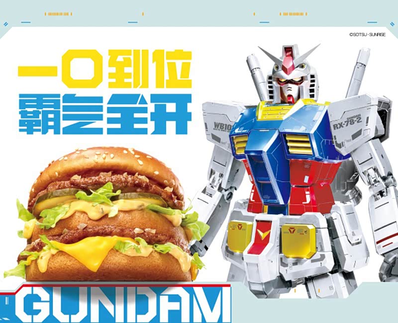 麦当劳这次和高达的联名,除了部分快餐的包装,最主要的产品莫过于高达卡牌和巨无霸配色的元祖高达拼装玩具(以下简称“巨无霸高达”)。和往常不一样的是,这次巨无霸高达,不需要去麦当劳门店蹲点抢购,而是在麦当劳某猫旗舰店购买相应的套餐,才能获得以129元购买巨无霸高达的资格。
