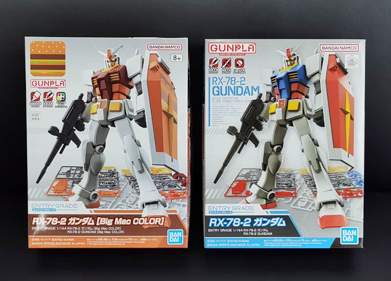 在尺寸、重量、做工方面几乎没有差别,只是配色不同,巨无霸高达还多了一张小贴纸,连说明书都一模一样。至于值不值,我在这里就不多评价了,反正钱都花了,好玩就行了!