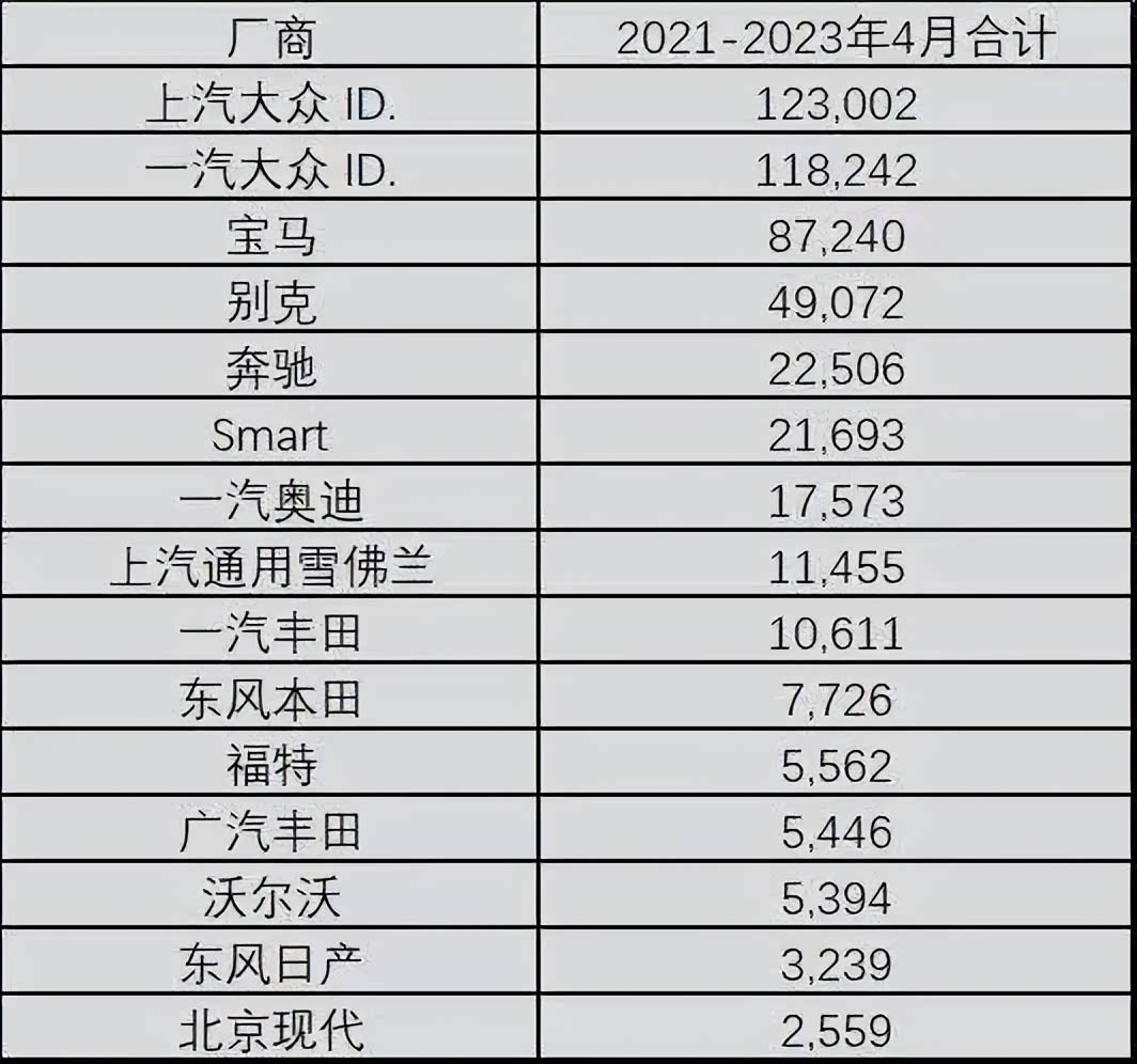 从上汽大众首款ID车型ID.4 X于2021年3月上市算起,截至2023年4月初,用时两年, 上汽大众ID.(参数|询价)纯电系列累计销量突破12万辆,位列合资电动品牌销冠。
