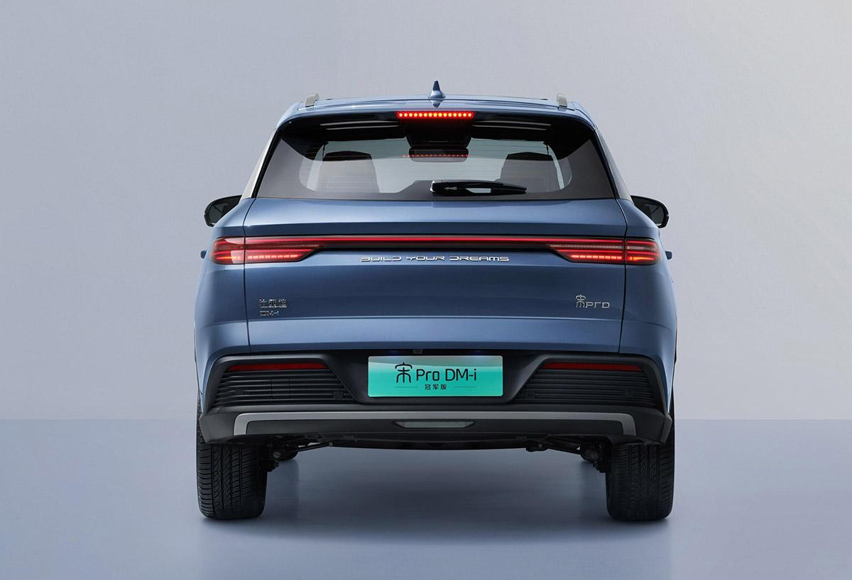 新车尾部主要对尾灯及后包围进行了重新设计,将“Build Your Dreams"的标识调整至贯穿式灯带下方。同时,宋Pro DM-i冠军版新增全新的远山青外观配色。