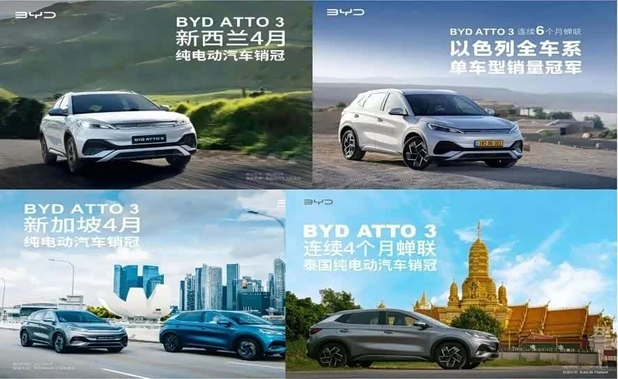 汽车有文化了解到,比亚迪ATTO 3已斩获以色列、泰国、新西兰与新加坡等多国纯电市场销冠。如在以色列市场,比亚迪ATTO 3已经连续6个月蝉联以色列全车系销量冠军,且销量远远超越市场中其它产品,有望成为当地人们的“国民电动座驾”;在泰国市场,比亚迪ATTO 3则连续4月获得当地纯电市场销量第一,今年第一季度上牌辆超5500余辆,占市场总上牌量的三成以上。