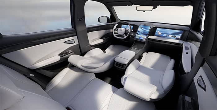与此同时,此次新车还给到了“宠爱副驾”,采用了独特的主副驾门板扶手采用不对称设计,副驾门板扶手更高,满足副驾乘坐时更舒适得搭手姿势;另外副驾有着630毫米副驾驶腿部空间,座椅还支持一键躺平功能,座椅放倒至125度,能呈现最佳观影后仰角度位置,配合副驾驶娱乐屏、带电动腿托以及按摩理疗功能座椅,为用户带来相当出色的影音娱乐体验。