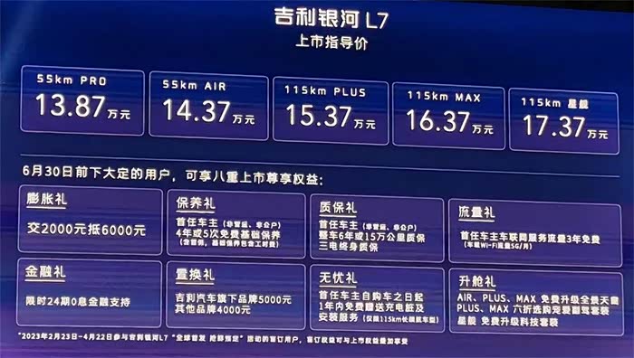 在银河L7没来以前,吉利汽车单一品牌的产品线说实话没那么能打,去年吉利新能源车在家族销量的占比只有大约23%左右,其余几乎都被燃油车所贡献。其实对于吉利来说,在智能电动车时代,在大步迈入的前提之下,就必须保证可靠性和品质,让用户用得舒心、开得放心才是一台好车的基本素质。