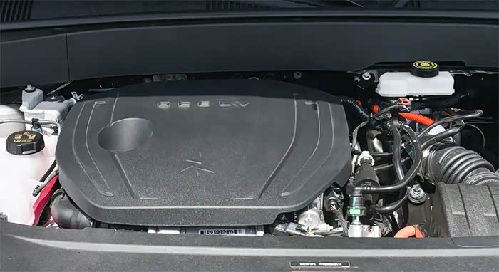 但需要注意的是,有很多人不解为什么一台插混车型也能有更接近纯电车型的全封闭式格栅,这主要得益于结构紧凑的电力系统,在足够空间布置的前提之下,包括挡风板和大功率进气扇都能布置在内;另外全新银河L7的发动机冷却系统采用3层水冷技术,有效解决了即便是前舱封闭也能带来良好的散热问题。