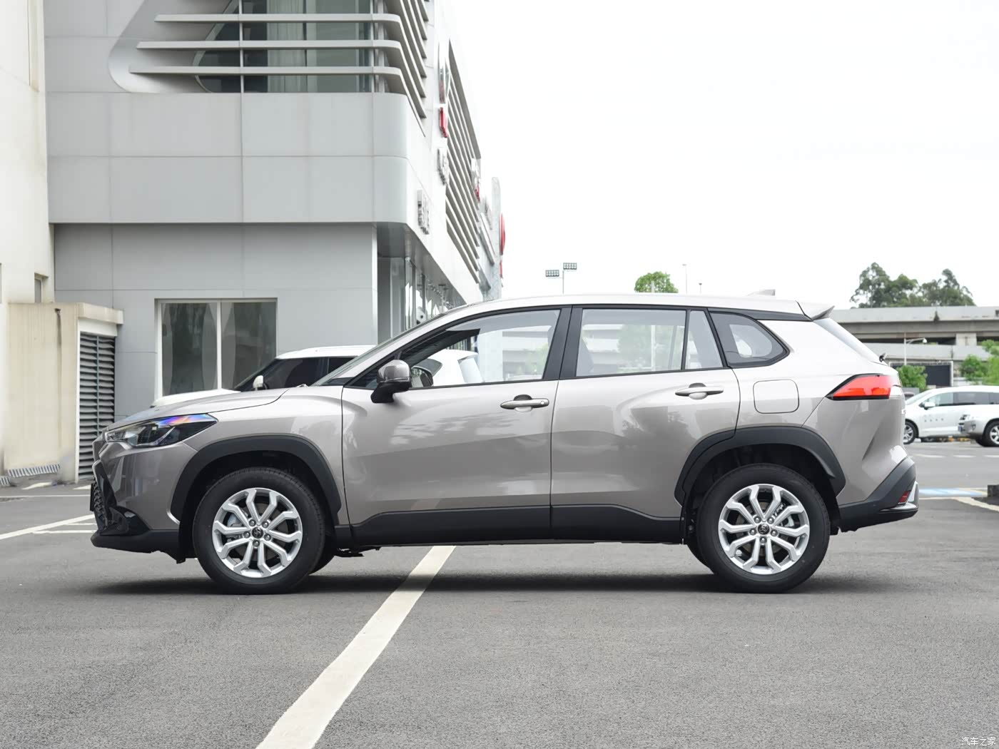 从侧面看上去,整个车身显得比较敦实。轮眉为接近直角造型,并且在轮眉和侧裙处都有黑色的包裹,增加了SUV的野性;轮毂为多辐式设计,匹配了 R17、R18两种规格的轮毂。尾部看上去比较规整,后包围黑色面积较大,配合银色的装饰板,整体比较运动。卡罗拉锐放整体的长宽高是4460mm/1825mm/1620mm,轴距2640mm。
