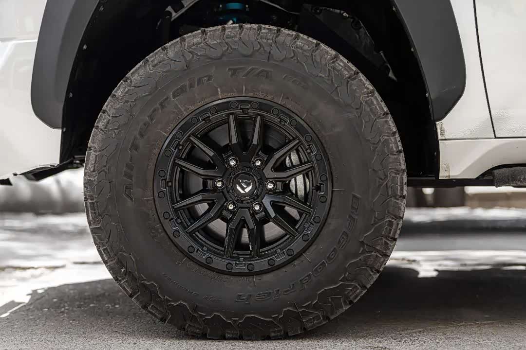 315 70 R17百路驰ko2轮胎和Fuel越野轮圈组成了该车的行走系统。在多年的实战经验中,Ko2向我们展示了其优秀的牵引力和耐用性,应对多种复杂的路面状况丝毫不在话下。而Fuel越野轮圈则赋予了车辆更加霸气的视觉效果。