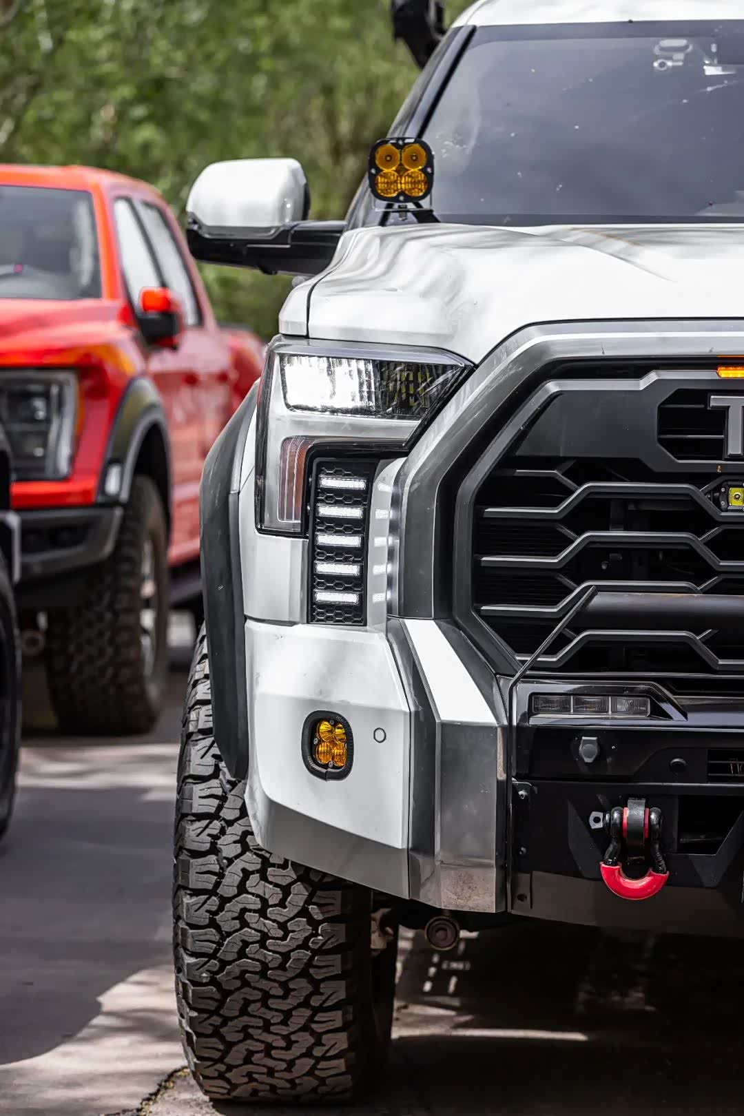 在照明方面,车主也有所考虑。在A柱和雾灯位置,均安装了来自BD的四粒射灯,强大的照明效果,满足了夜穿需求。