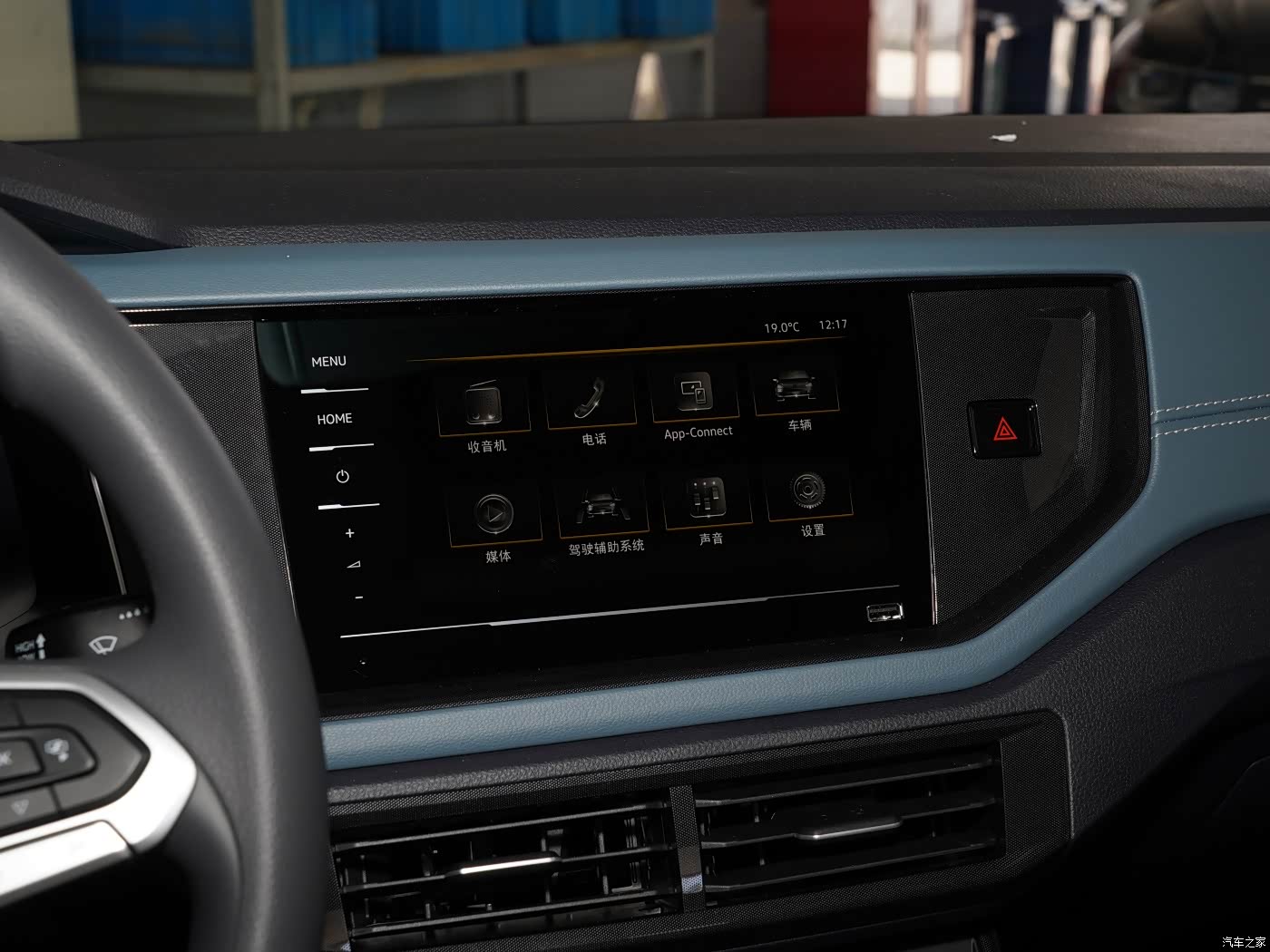 来到朗逸新锐的内饰,整体布局是我们熟悉的上一代大众家族化风格,T字型的中控台,功能分区合理,但是考虑到定价,几乎都是硬塑料材质。中控屏幕采用的是内嵌式,功能上支持无线CarPlay,实用性得到保障。