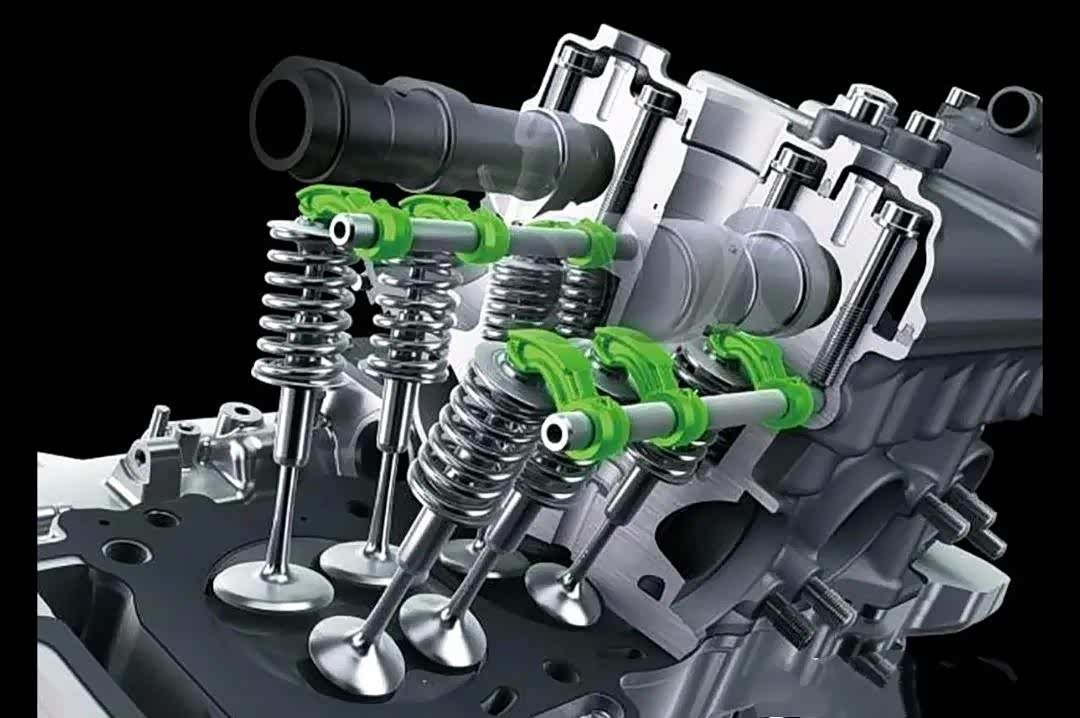 动力方面,新款ZX-10所使用的是一款直列四缸水冷电喷发动机,它采用双顶置凸轮轴16气门设计。其中实际排量998 cc,压缩比13:1,最大功率149.3KW,最大扭矩114.9N·m 。