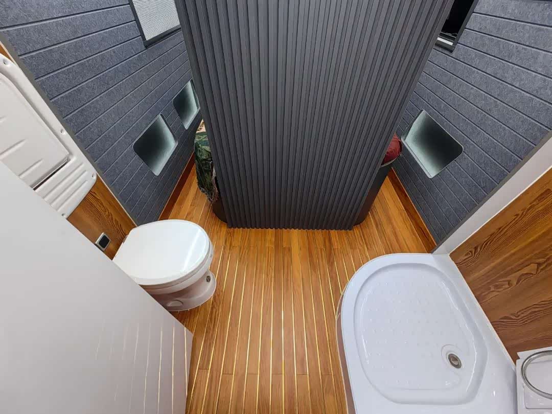 车身外部配备4米户外遮阳棚,不仅可以避免强烈的阳关,还可以防止小雨的侵袭,遮阳棚可以提供更大的户外空间,户外配抽拉式厨房可以烹饪美食,与朋友欢聚一场,还能让你尽情地感受自然的美妙和自由。