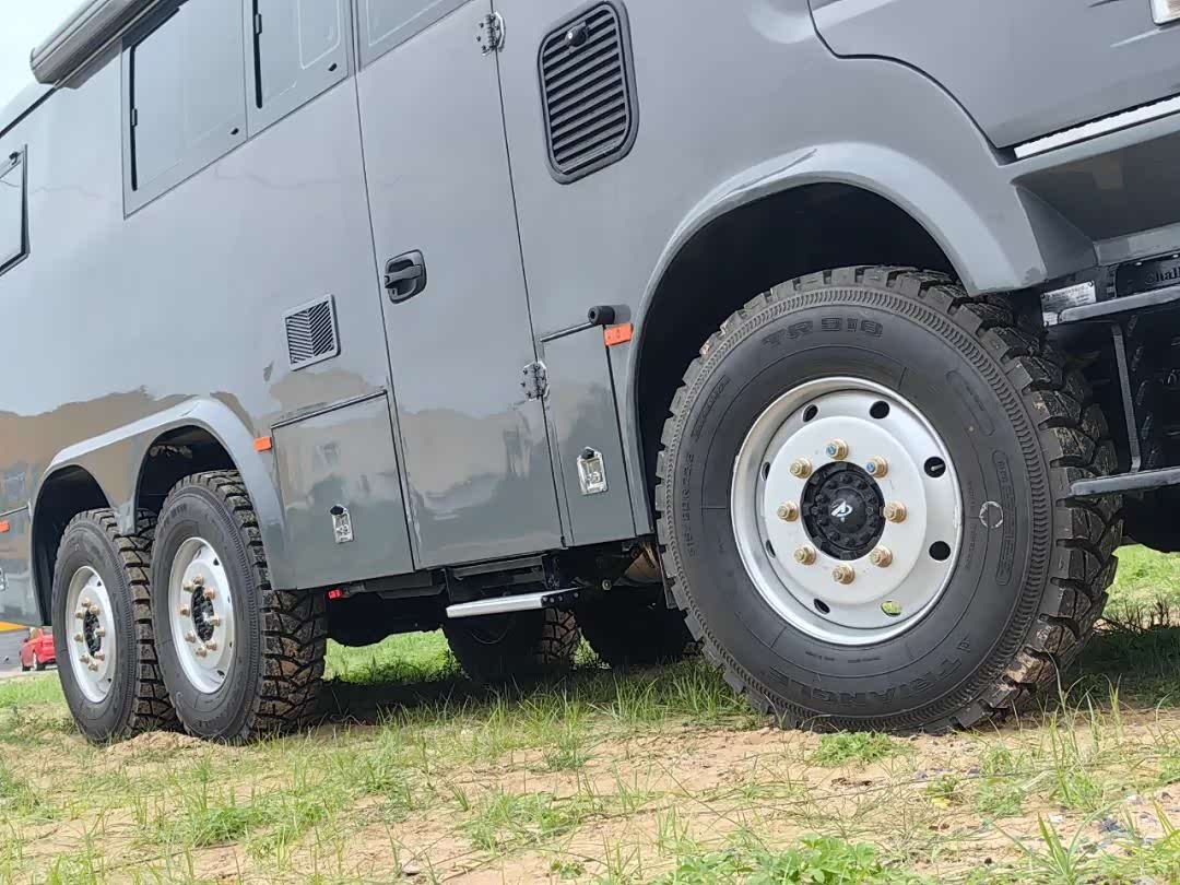 作为一种专业的越野房车,东风霸王龙六驱配备了全尺寸315/80R22.5越野轮胎,让您即使处以极端地形恶劣环境下也能享受畅快无比的驾驶体验。强悍的六驱系统,能轻松驾驭各种路况。