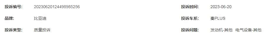 投诉车型:比亚迪秦PLUS