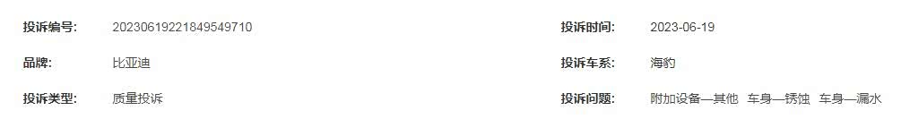 投诉车型:比亚迪海豹