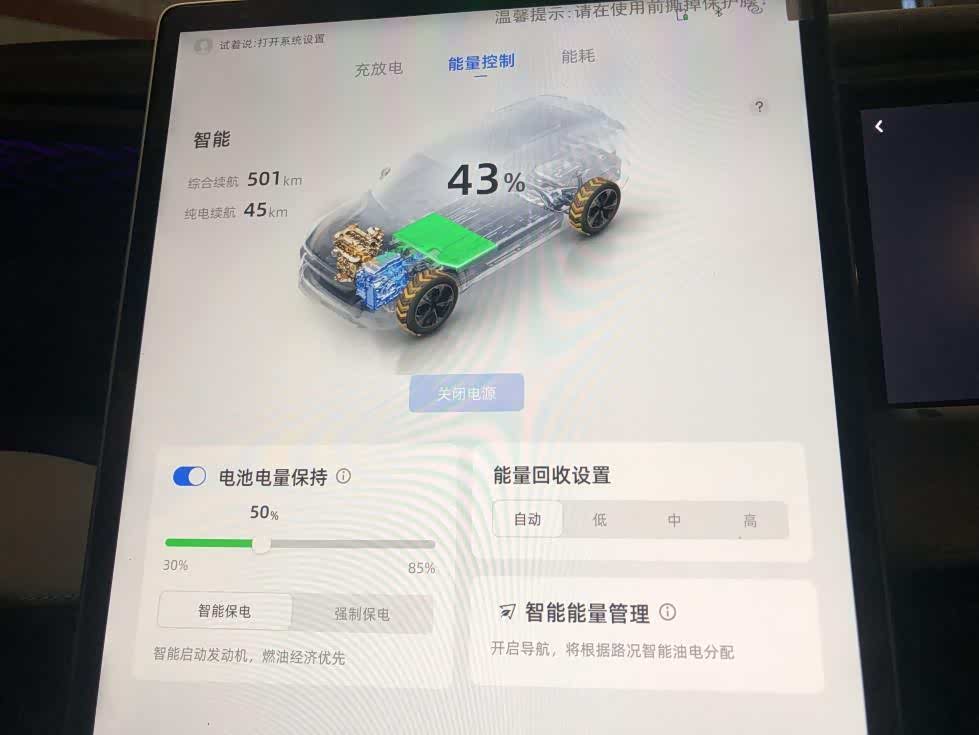 全新设计的UI美学,带来赏心悦目的视觉感受。比如动能回收时,中控屏上的图示极具动感和科技感,而常规图示,则极简凸显高级感。