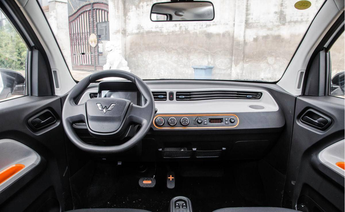 来到内饰方面,五菱宏光MINIEV采用了极简主义的设计风格,布局合理,操作清晰。中控台采用7英寸液晶屏幕,多媒体提供种类丰富的系统功能。同时座椅也采用了高质量的皮革材料,包裹感也相当不错。