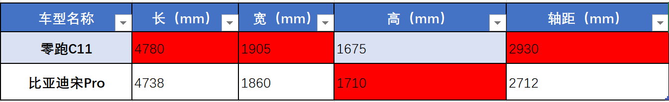 大部分人买SUV都是奔着大空间去的,而谁有更大尺寸意味乘坐空间会更宽敞。我们看两车的车身尺寸数据,零跑C11长、宽、轴距都要更大,而高度做到了更低趴,明显乘坐空间会更强。想想一家人出去玩,肯定是零跑C11这样更宽敞的空间使用起来会更舒服。