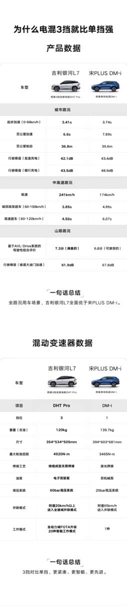根据测试,搭载3挡DHT Pro的吉利银河L7在CLTC工况下的综合续航里程可达1370km,满油满电可从北京跑到武汉不补能。