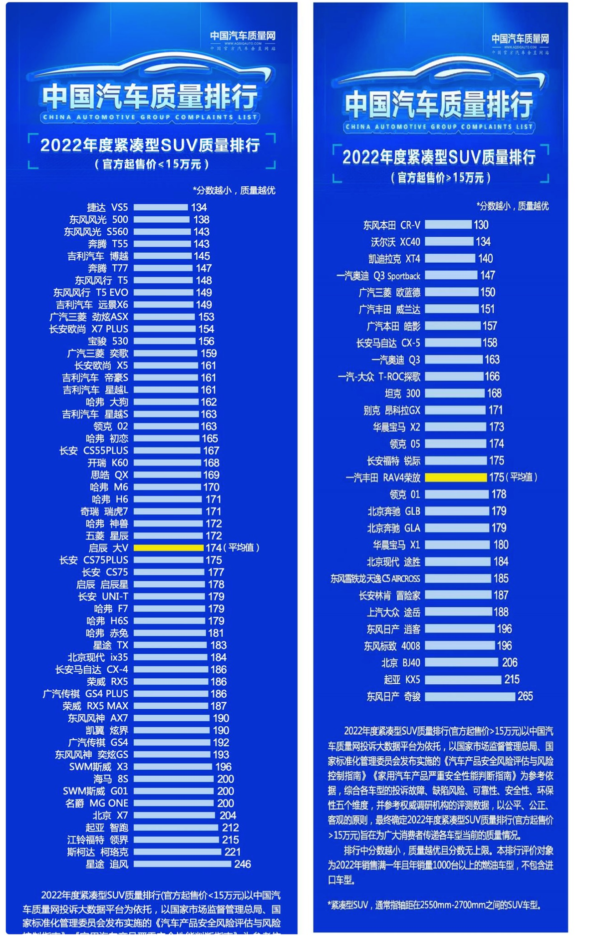 紧凑型SUV质量榜单,国产SUV表现强势