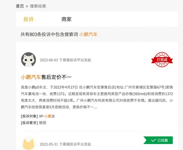 另外就是消费者的使用体验问题。在新浪提供的消费者服务平台黑猫投诉,搜索小鹏汽车关键词,可以看到多达800多条的投诉,这并不包含一些汽车平台投诉,日过加上专业的汽车投诉平台,这一数字会更高。