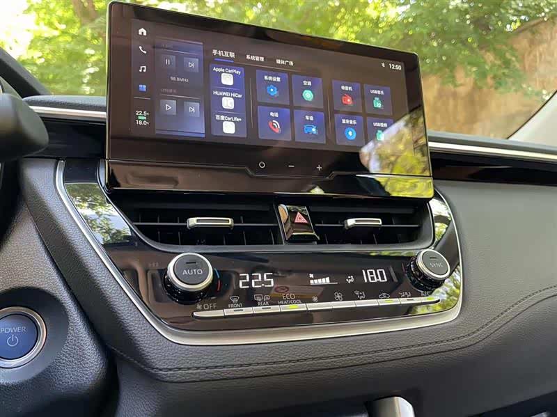 车内的布局和设计依然没有改变,采用了12.3英寸全液晶仪表盘和10.25英寸触控大屏,整体设计非常简洁,丰田车型向来都是以实用为主,虽然相比当下流行的中控大联屏科技气息少了些,但功能却一点都不少。该车支持CarPlay/Hicar/CarLife智能手机互联,手机基本都可以很方便的链接,同时语音识别可以30秒内连续对话,省去了不少麻烦。同时国内消费者常用的小程序应用,诸如bilibili、央视影音、虎牙直播、小红书等等,可提供相当便捷的交互体验。