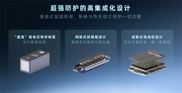 这套“弹匣电池”系统有4个核心技术:超高耐热稳定电芯、超强隔热电池安全舱、三维降温冷却系统、第五代电池管理系统,行业首次实现了三元锂电池整包针刺不起火,保证了电池的安全。