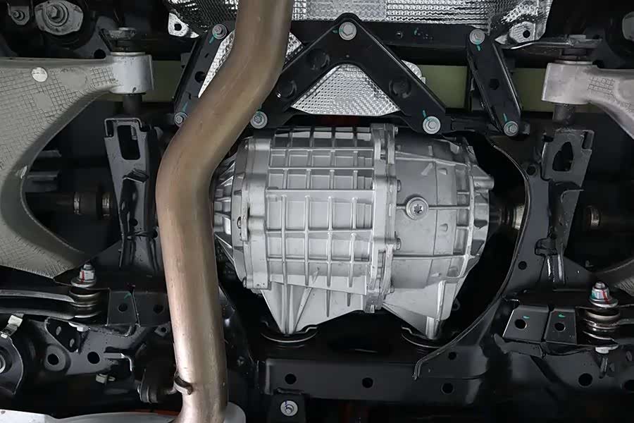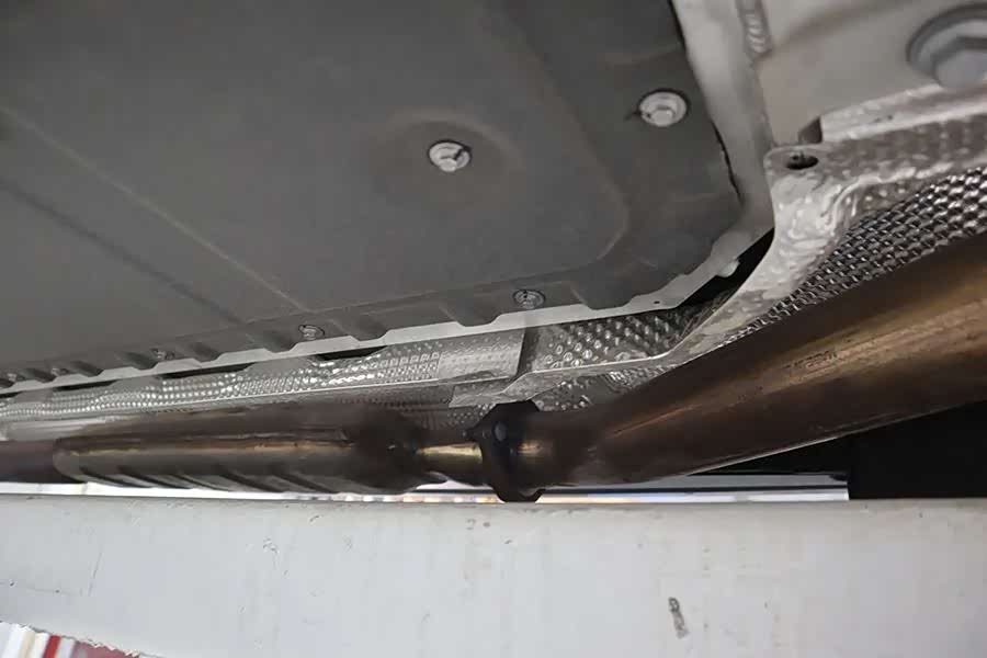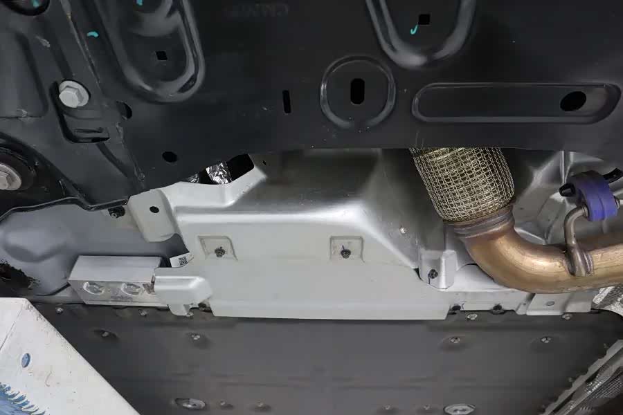 排气管被放置在电池组的一侧,从前到后隔热做得非常完整。