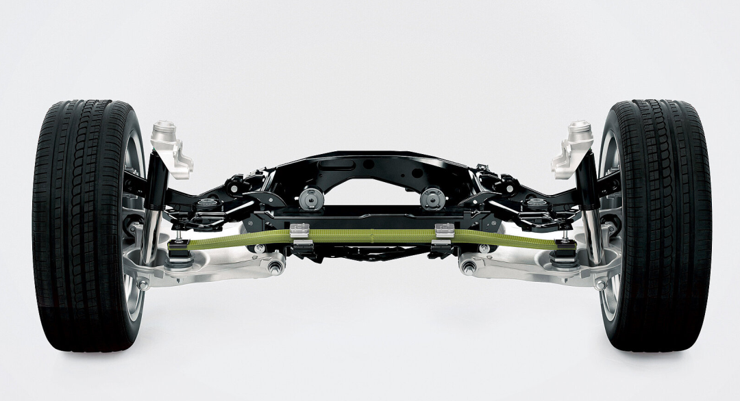 这根绿色的“板簧”,供应商是德国西格里(目前已是中资控股)。这种材料学名叫做GFRP(玻璃纤维增强塑料),这种弹簧不仅比传统钢制螺旋弹簧减重50%,而且还更节省空间,同时起到悬架连杆的作用,进一步提升悬架刚性。