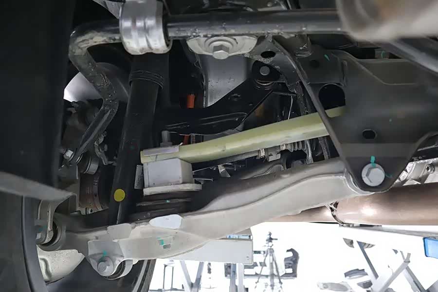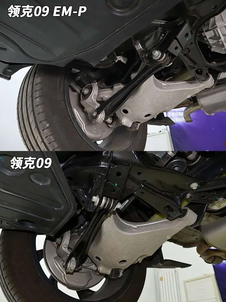 后悬结构、材质同样与汽油版领克09、沃尔沃XC60相同。硕大的复合型空心铝合金下摆臂,明晃晃的,很显眼,想想那些用三根筷子当悬架的车型,做车的差距怎么这么大呢。