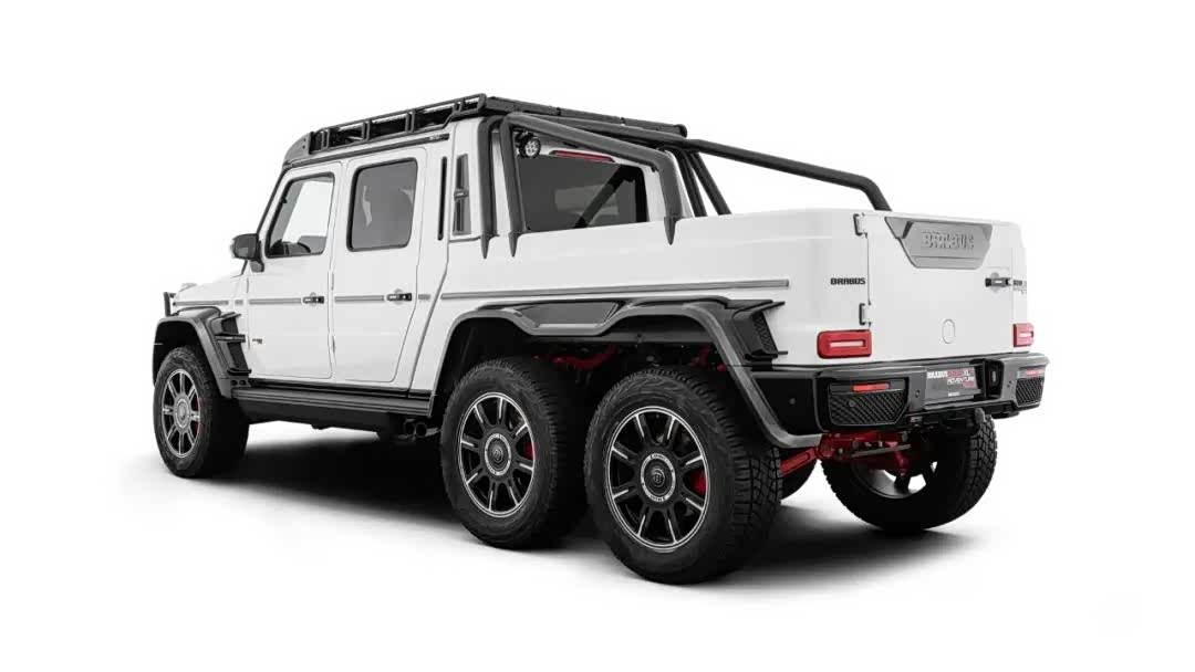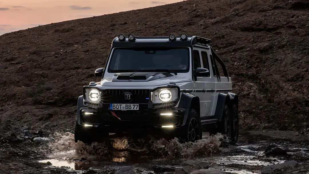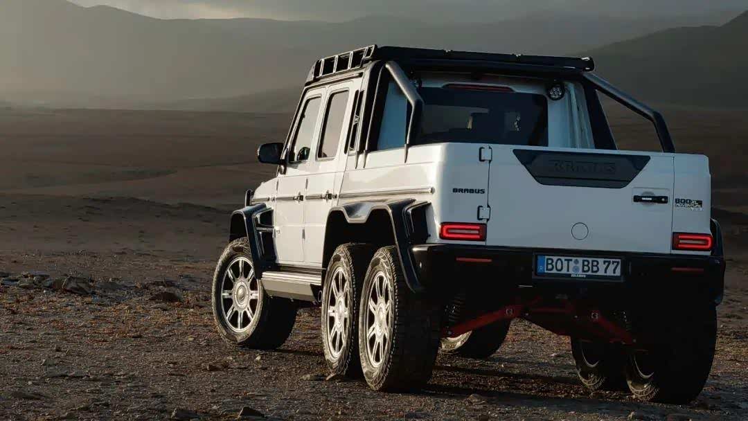 到底怎么个强法?从车名可以看到点信息,巴博斯的命名一般都是马力数据,所以800即是代表这车拥有800匹马力,而6x6当然是指6轮驱动了。这车动力系统是4.0T V8双涡轮增压发动机,经过巴博斯改装后爆发800匹的马力和1000牛·米的扭矩,百公里加速只需5.8秒。