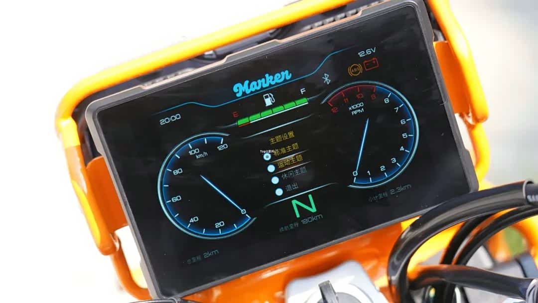 作为一款迷你车型,竟然配备了一块7英寸的TFT彩色仪表,这就有点离谱了。而且这块仪表不只是尺寸大,内部UI设计美观,显示效果清晰细腻,还支持IP67级防水防尘,蓝牙连接,还提供简易导航、多种风格主题可选,外接胎压监测,续航里程,油耗等等数据显示。