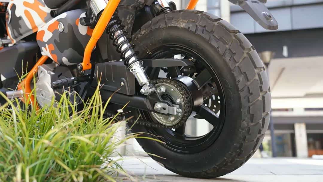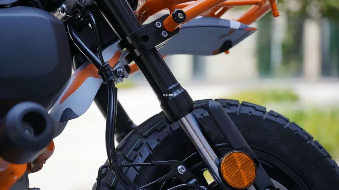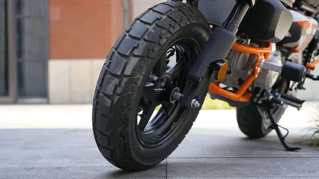 轮胎部分,由正新提供的多功能迷你摩托车专用真空胎,前轮尺寸120-80/12,后轮130-80/12,搭配170mm的最小离地间隙,以及越野风格的高位前后挡泥板,让灵明野趣的通过性得到了充分的保障。