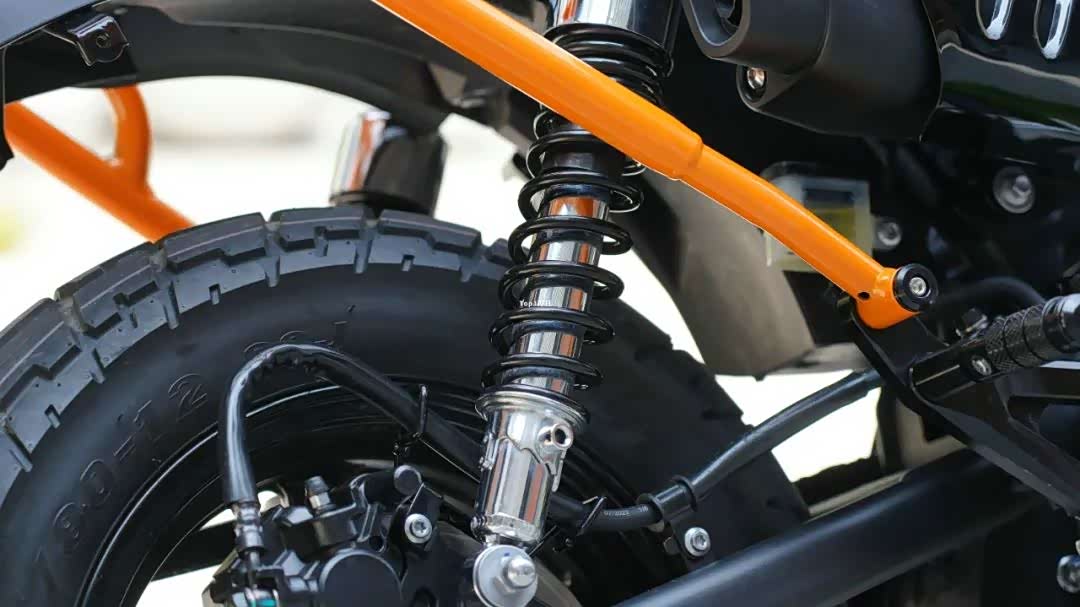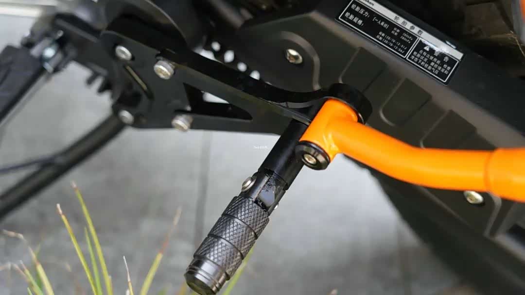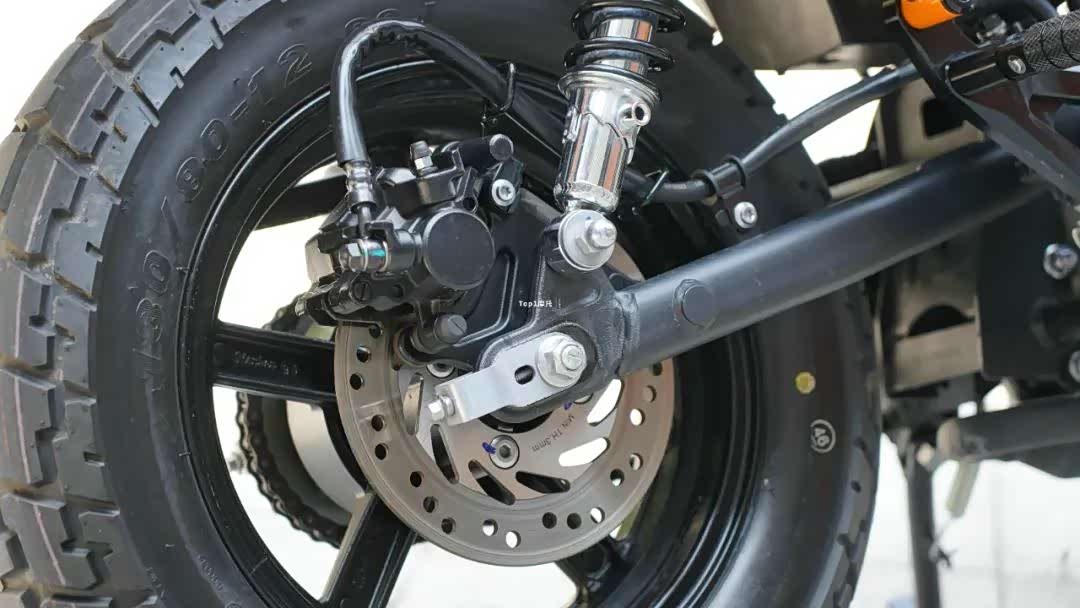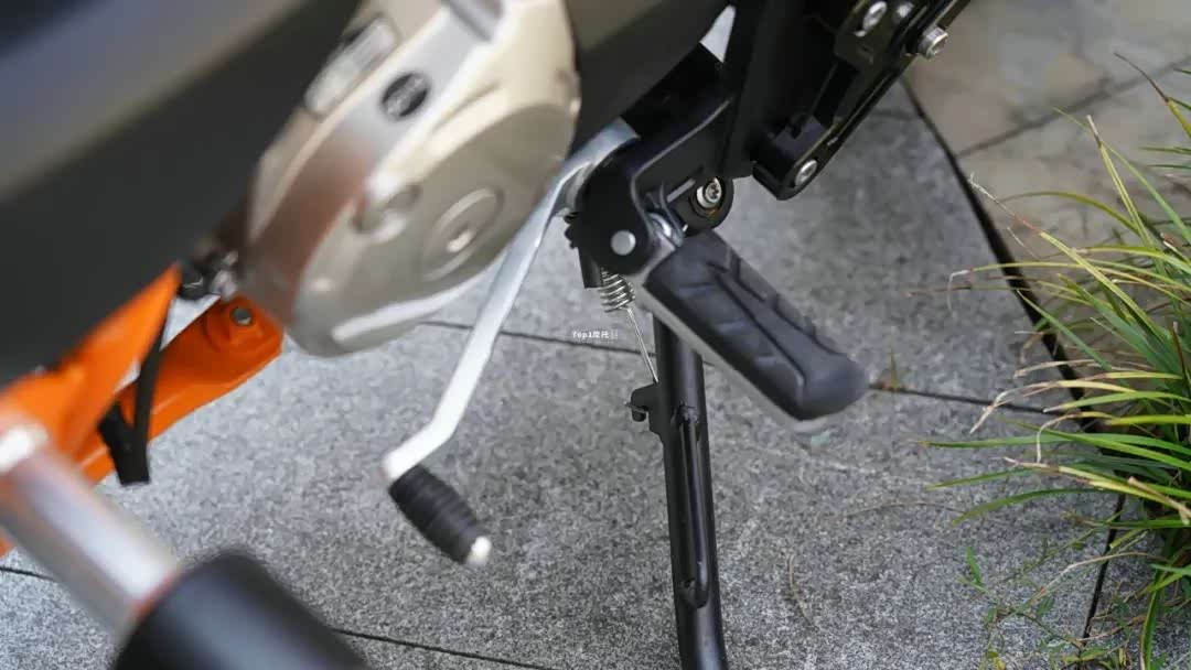 野趣版搭载的倒立式前减震和双边后减震均由重庆渝安提供,同时后减震还支持5段压缩调节,以满足单人骑行或者装载物骑行下的不同需求。不过减震的设定偏舒适性,但是行程和韧性都还不错,即便是上下马路牙子,也很难有触底的情况。