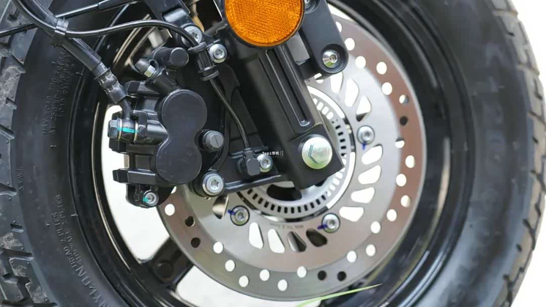 前后碟刹,前双活塞刹车卡钳,后单活塞刹车卡钳,标配前轮单通道ABS,为什么后轮没有给到?对于迷你车型来说这套刹车规格完全够用,后轮在没有ABS的情况下可玩性更高,更容易做出一些后轮滑胎之类的动作。