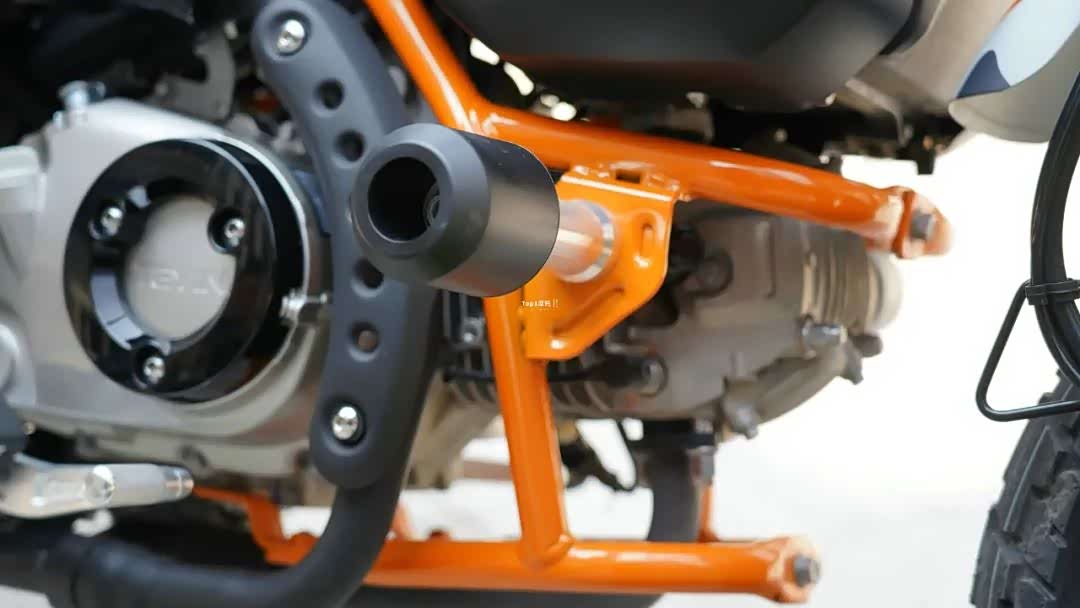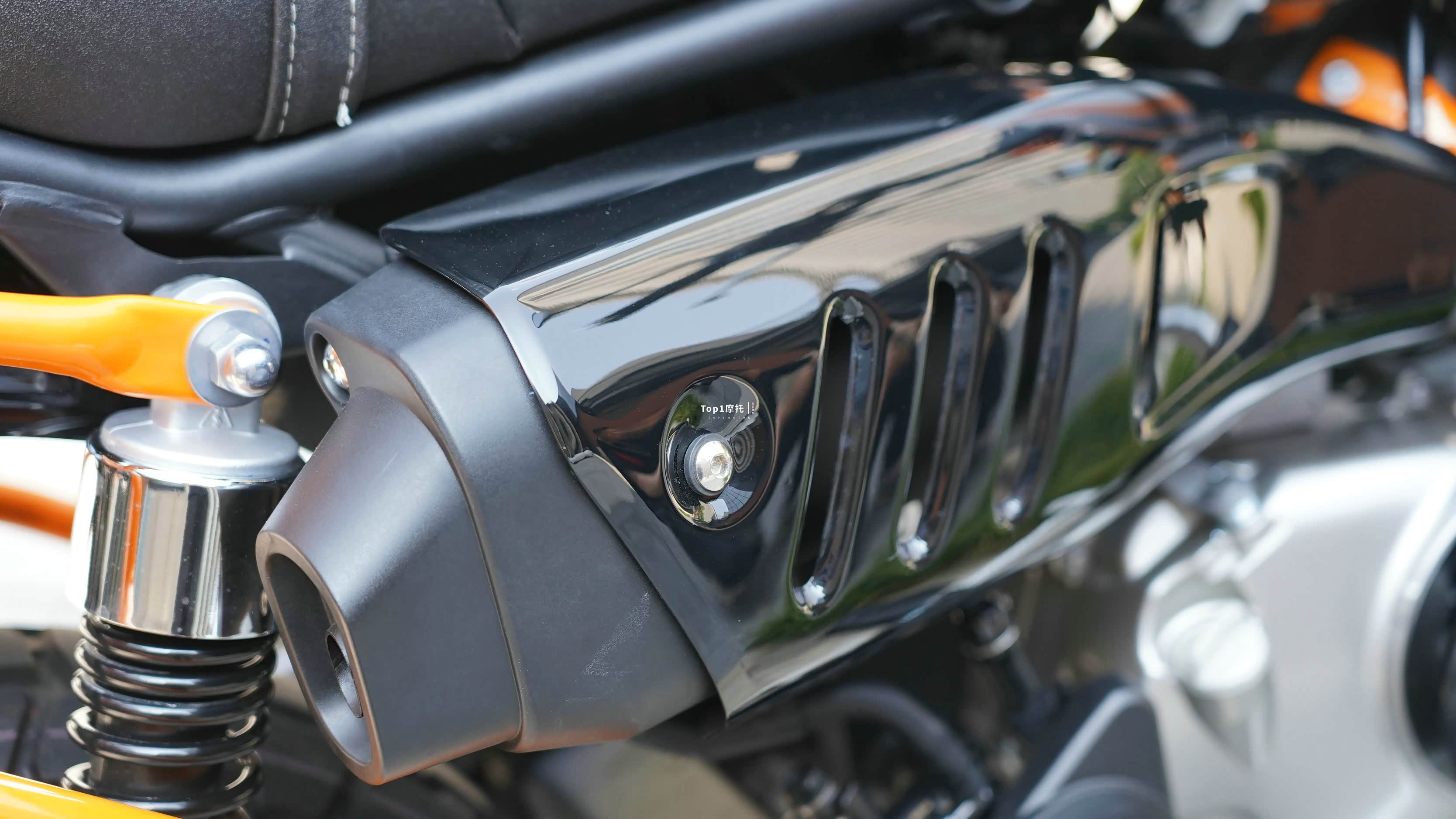 另外,攀爬风格的排气,前段和尾段都有防烫罩的设计,特别是尾段防烫罩,不仅用到的更具质感的金属材质,而且还有汽车级的烤漆工艺,耐受性更长久,质感也更为出色。