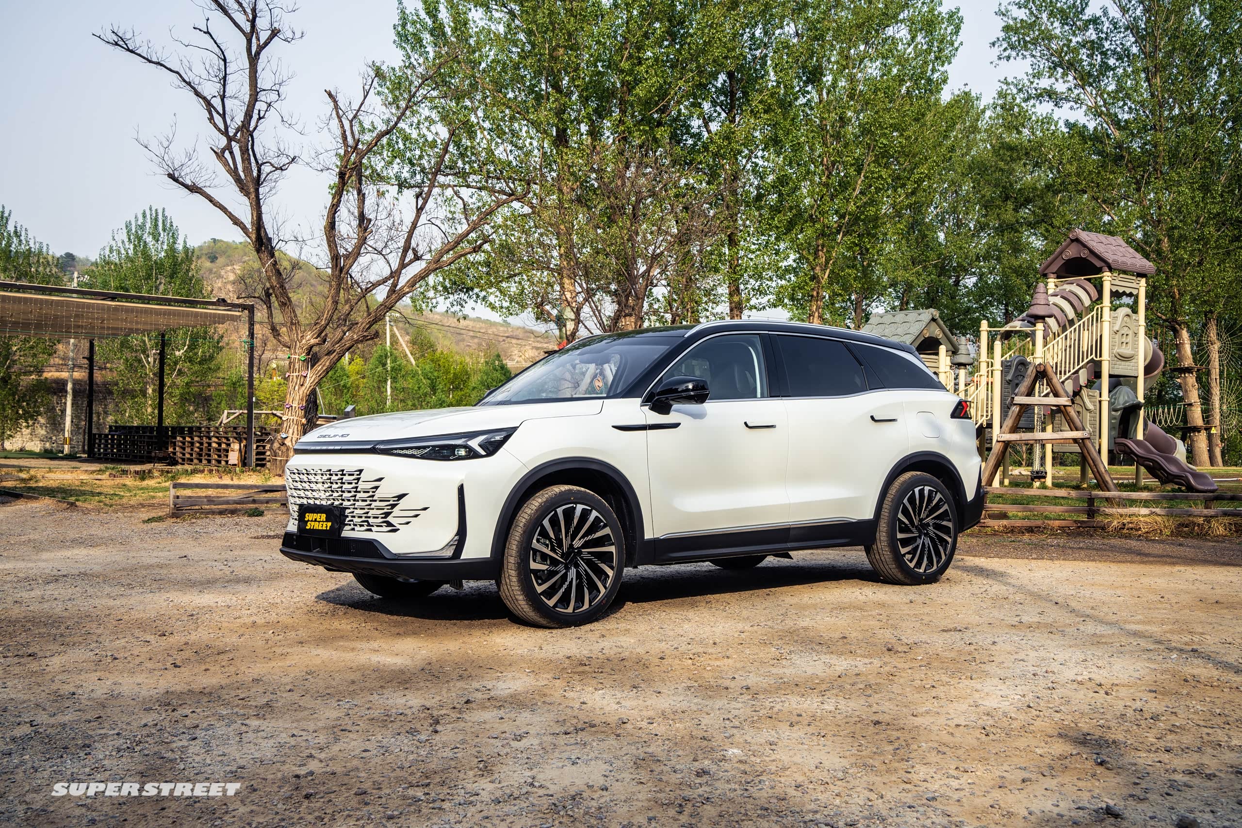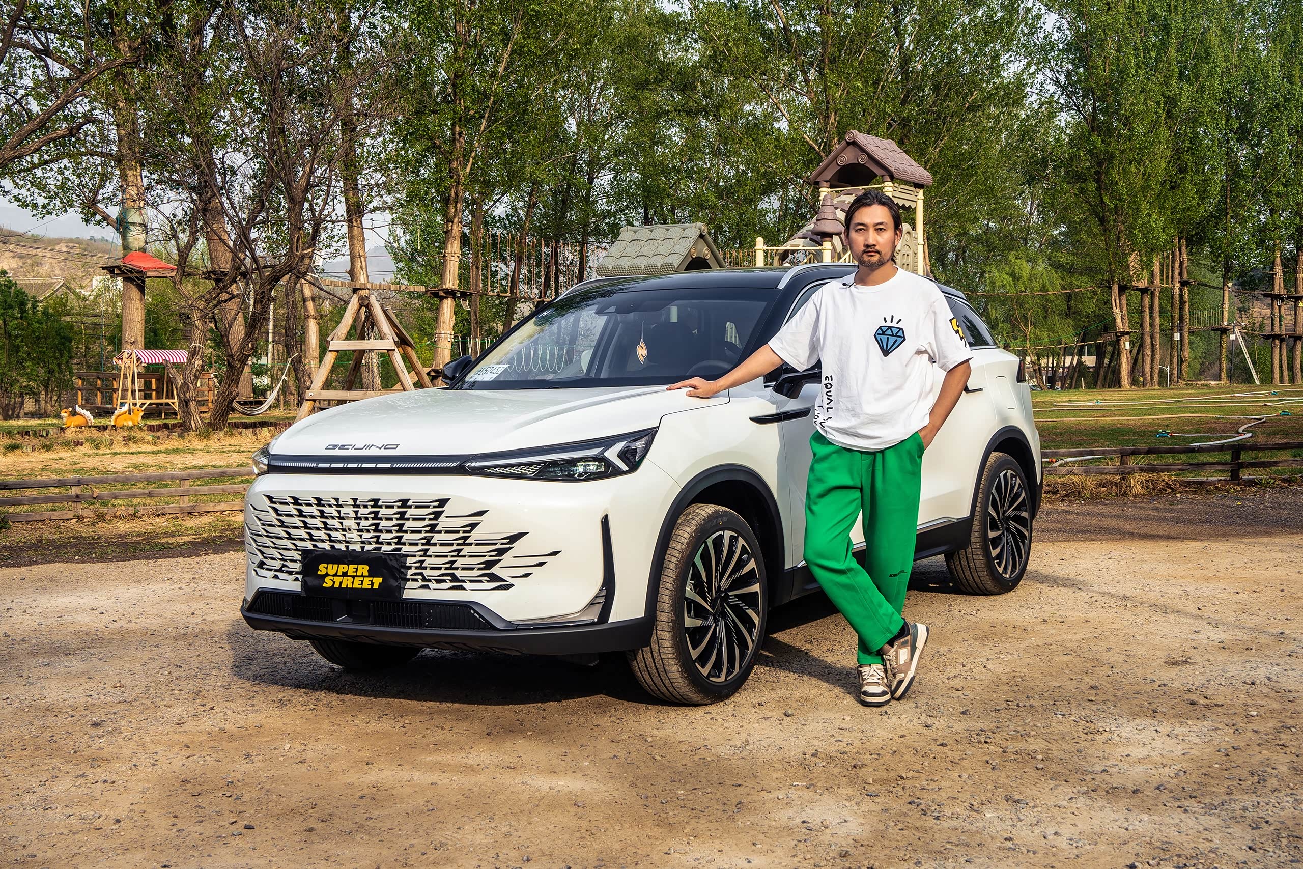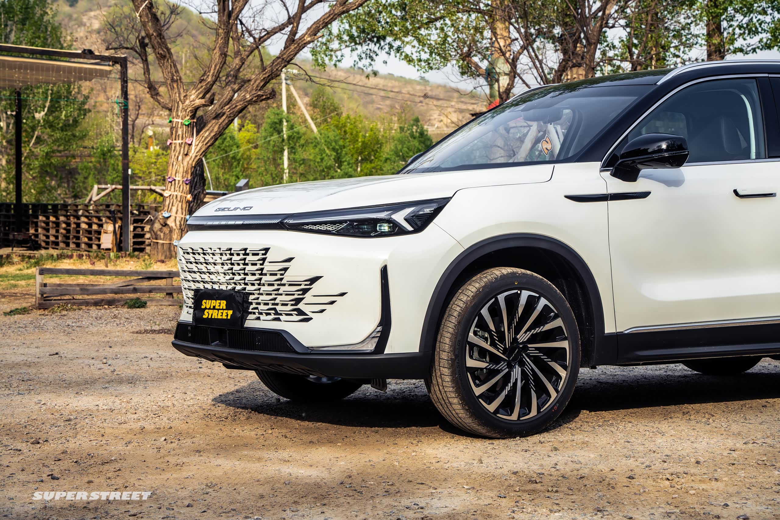 不管怎么样,在周末的时候,我一定是要开车来郊区转一转的,今天呢就开北京新X7,这款车是刚刚上市,大家可能比较陌生,我给大家简单讲一讲,首先它这个前脸是运用了东方美学的设计,它的前格栅是一种麒麟风格的,你看它具体的这种纹理和图案,有没有很像麒麟的鳞片。