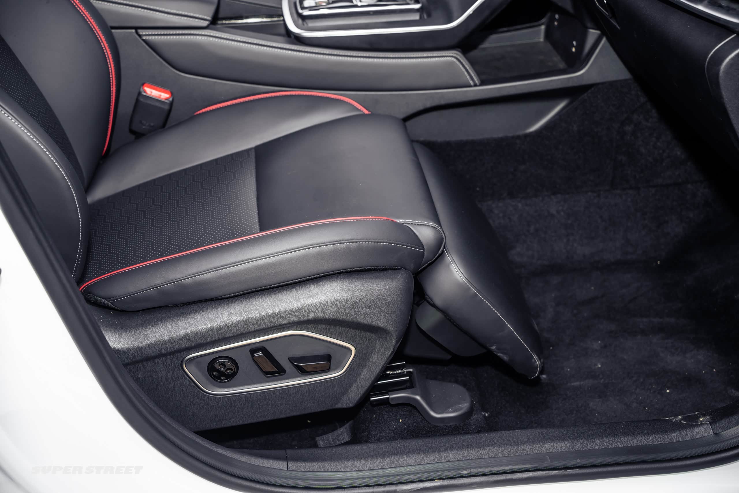我们来看一下副驾座椅,这个副驾座椅是女王副驾,当然是给自己的媳妇儿来做这个副驾的,然后它有一个超长的电动的腿托,它也是电动调节的,这样乘坐坐车很舒服。