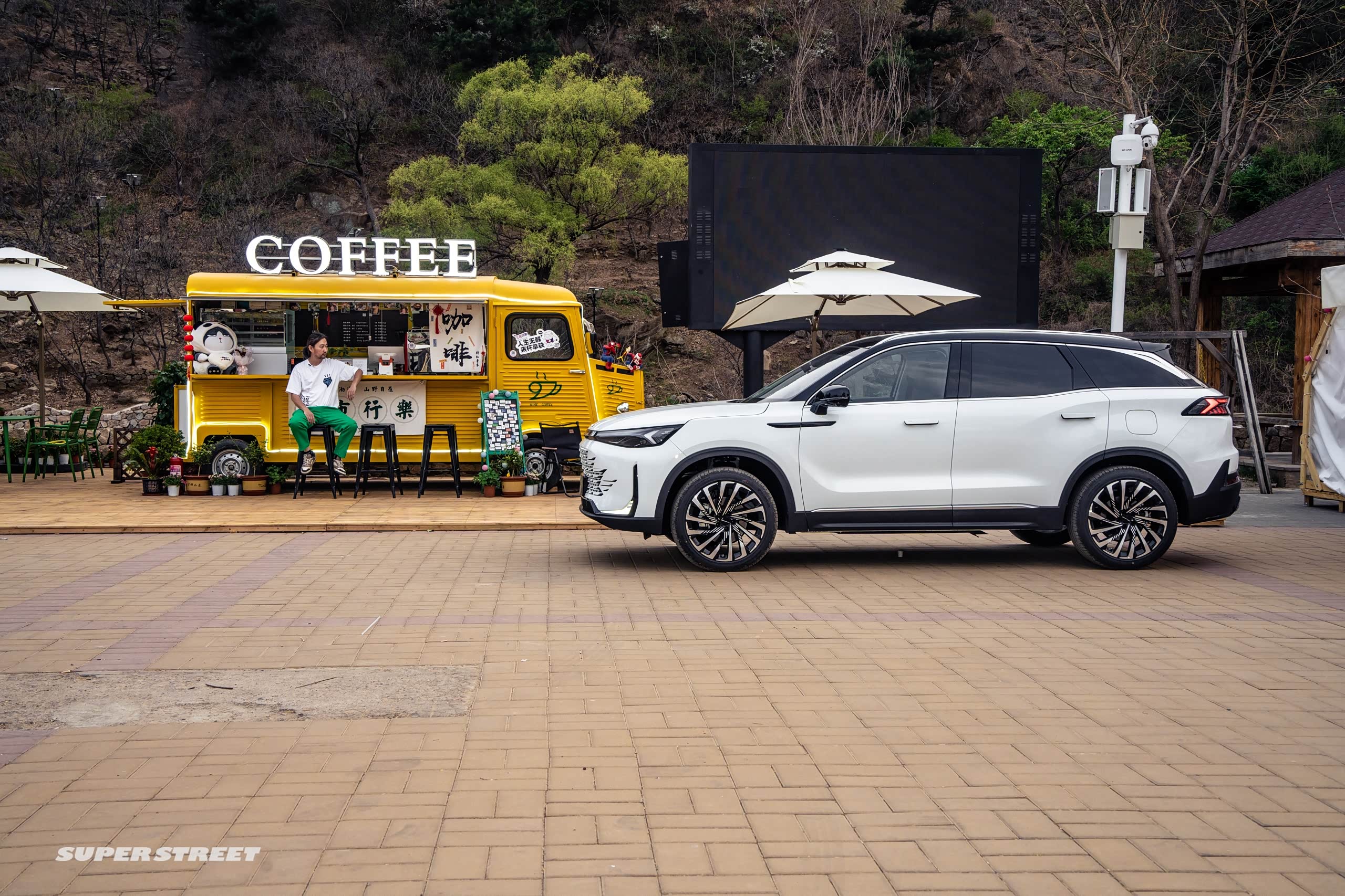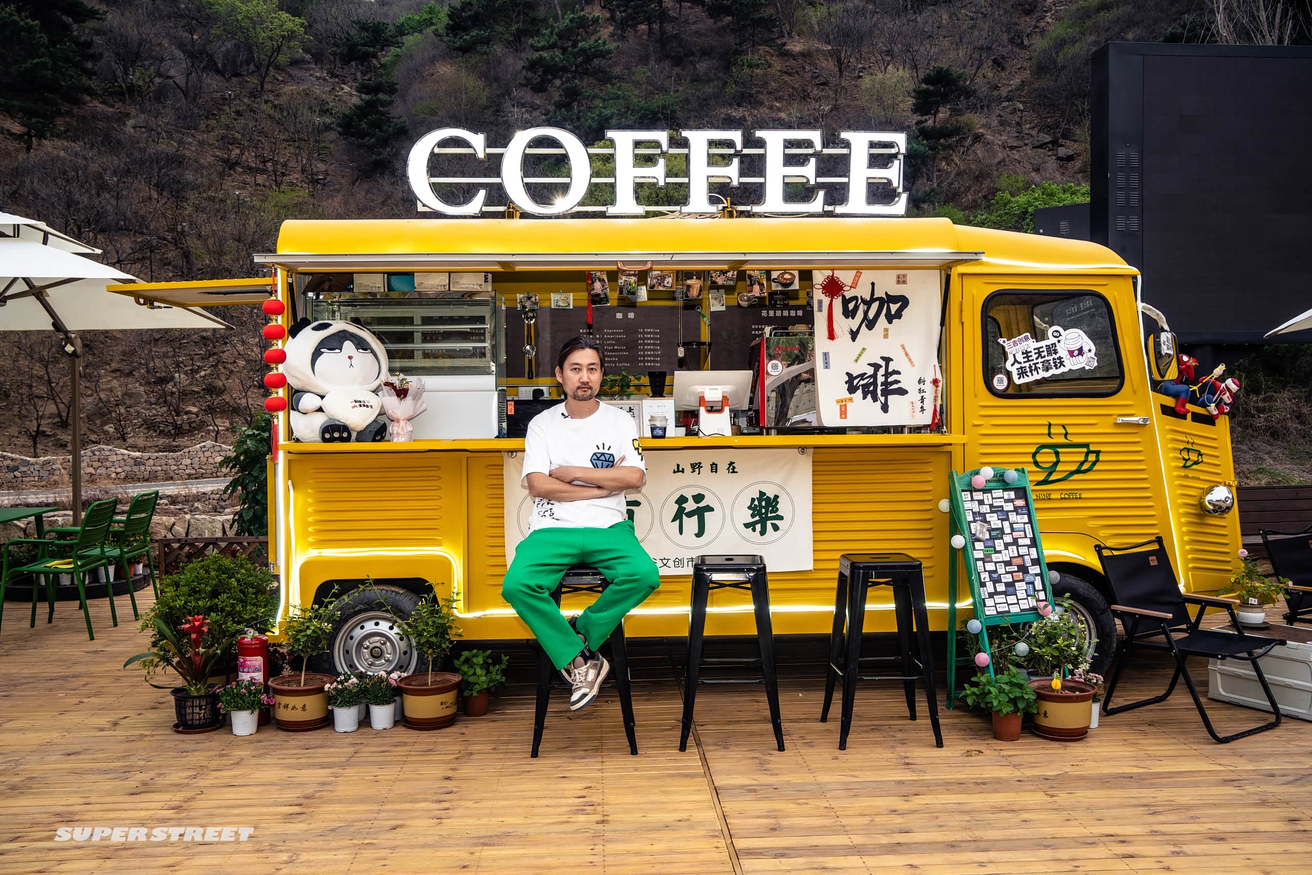 在郊区玩可以看看风景,多有意思,这边有个文创市集,咱们进去看看有什么好玩的东西,这里面文创园有个卖咖啡的,我们在这边休息休息,点杯冰美式,在溪谷市集点了杯冰咖啡,咱们坐这边歇一会儿,这边也都是一些露营的风格。