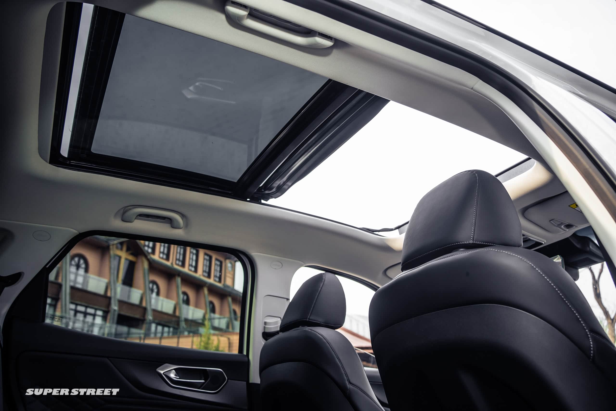 来我们看一下后排。它的轴距是2800mm,腿部空间有一拳多的腿部空间,后排的中央扶手,它的配置是非常非常豪华的,是有座椅通风的配置,还有座椅加热的配置,关键是它还有座椅按摩的配置,其实这个车还有一个超大的全景天窗,它的打开面积也非常大,然后在这边就可以站起来,还要什么敞篷车,有新X7就够了。