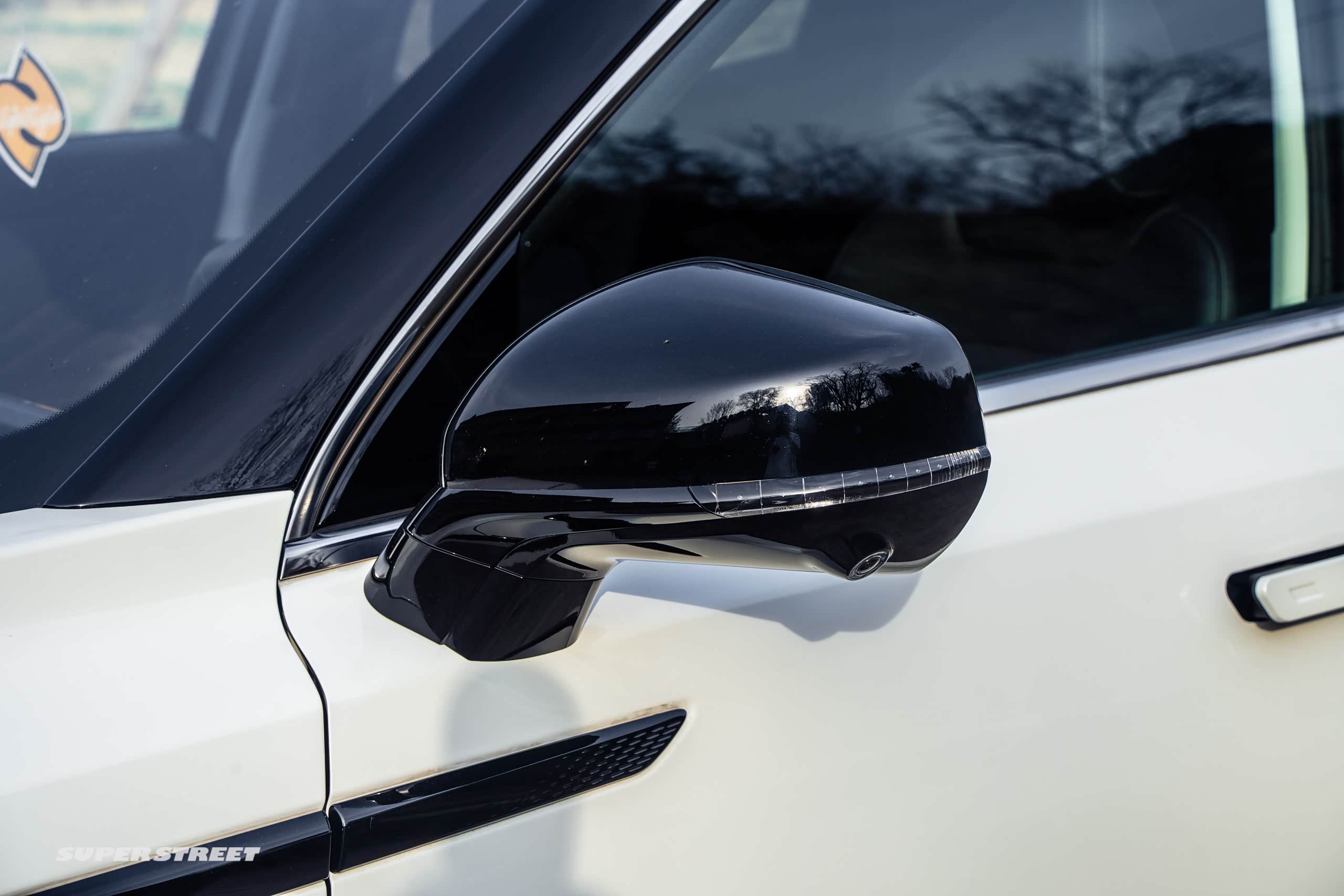 我们看一下侧面,走进车辆,随身拿着钥匙,它就会自动的解锁,它是这种弹出式的隐藏门把手,非常高级,有点像新能源车,比较时尚,另外这个车可以看到它车顶是一种亮黑的。包括后视镜、前面的这个装饰板,它整个形成了一个双拼的颜色。
