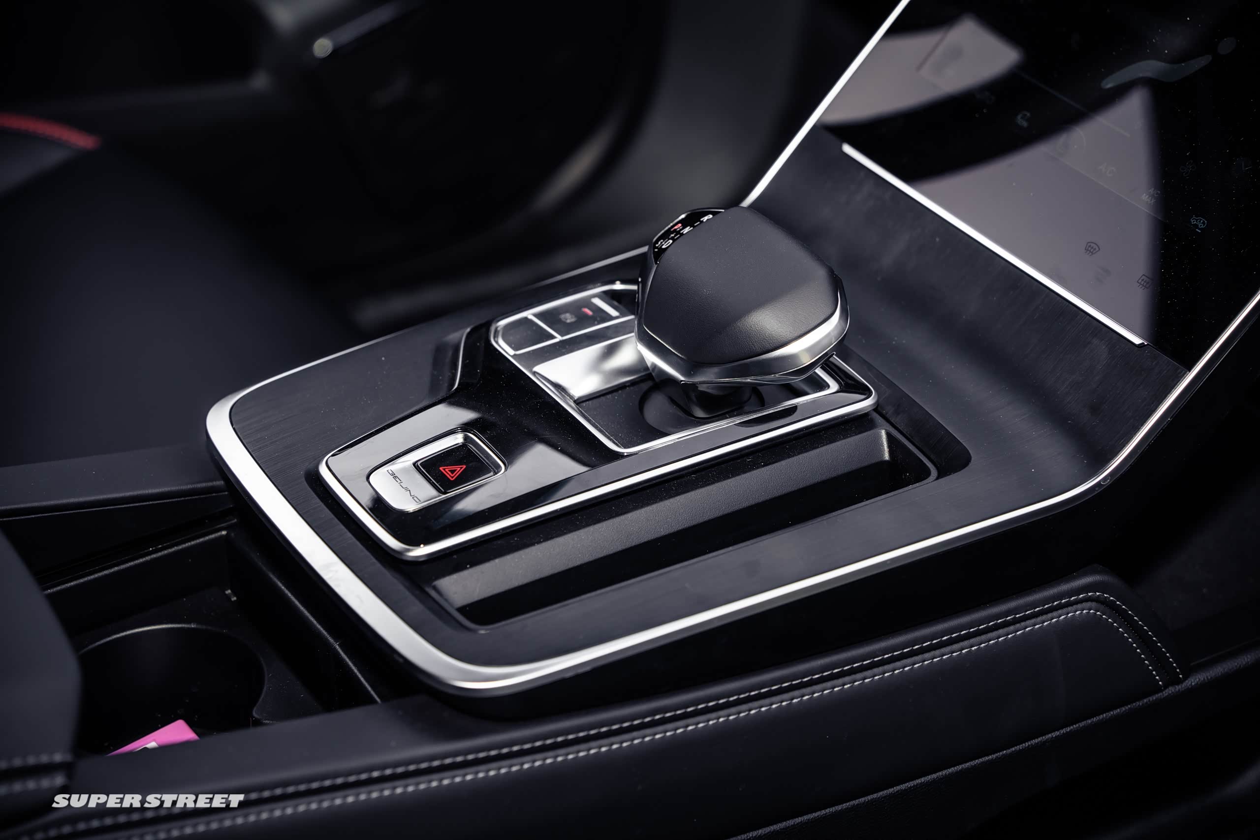 我们看一下内部都有什么改变,我们来车内看看北京新X7的内饰,其实进到车内先找手机放哪,这有一个杂物槽,其实放手机也比较合适。