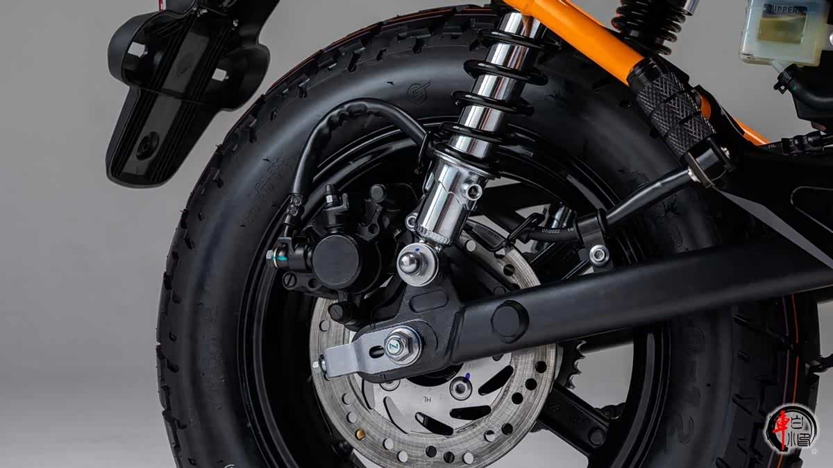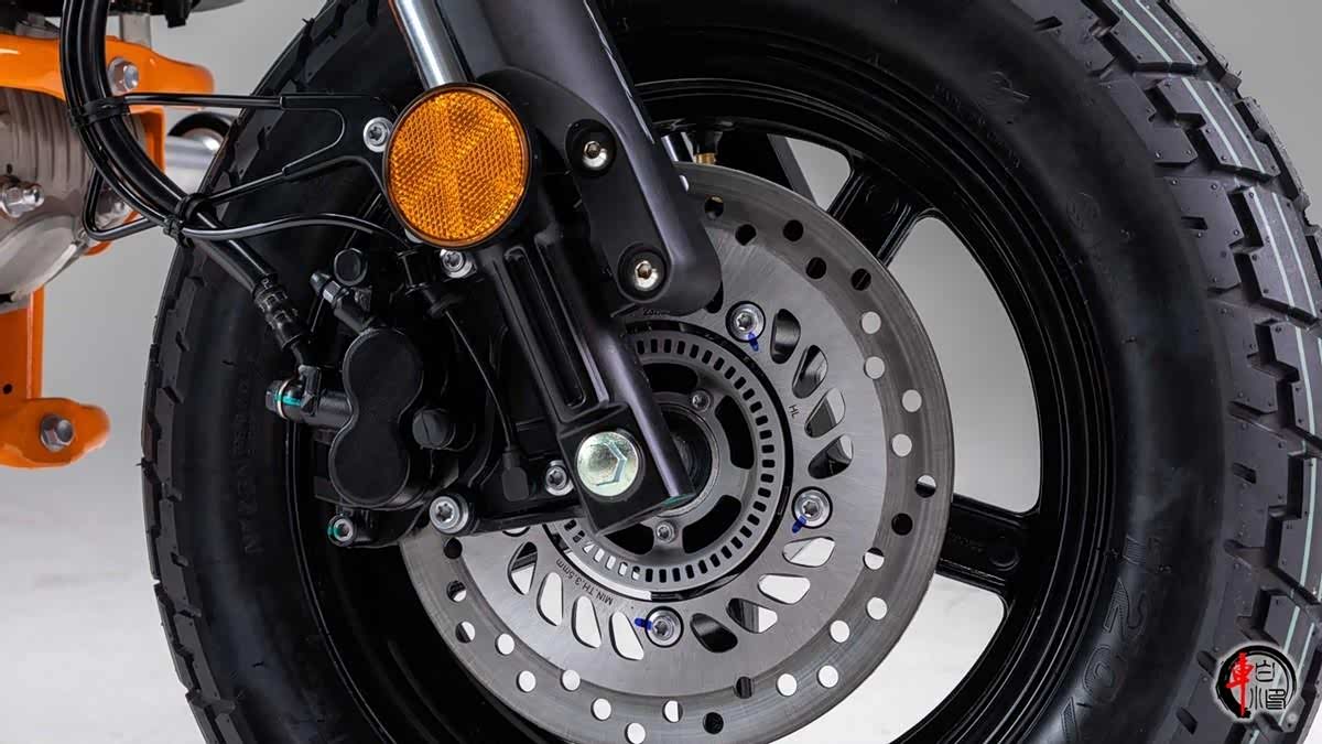 减震系统,野趣展现出了其性能和稳定性的一面。倒置前叉+预载可调双枪后减震组合,来自国产渝安品牌,为驾驶者提供了平稳的驾驶体验。刹车系统采用前后盘刹,前双活塞后单活塞制动卡钳,并配备前轮ABS制动系统,这一点就没有必要模仿本田了吧。