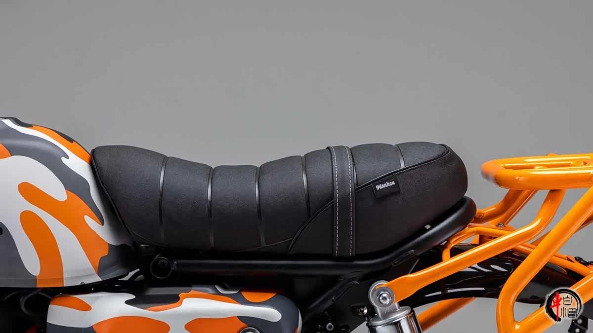 ◆ 底盘硬件 车前尾后的置物架设计成为了它的一大亮点。不仅能够轻松承载各种露营用品,还具有极高的实用性和耐用性。整备质量为118公斤,高刚性车架也使其具有很好的承载能力,油箱容量5.6升。