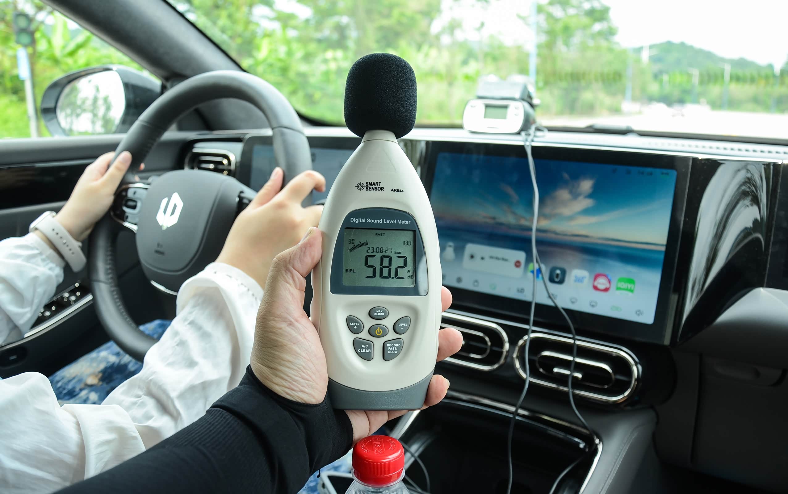 车内噪音测试,将使用专业的噪音仪测试60km/h、80km/h以及100km/h三个速度下的车内噪音大小,多次测试取平均值。