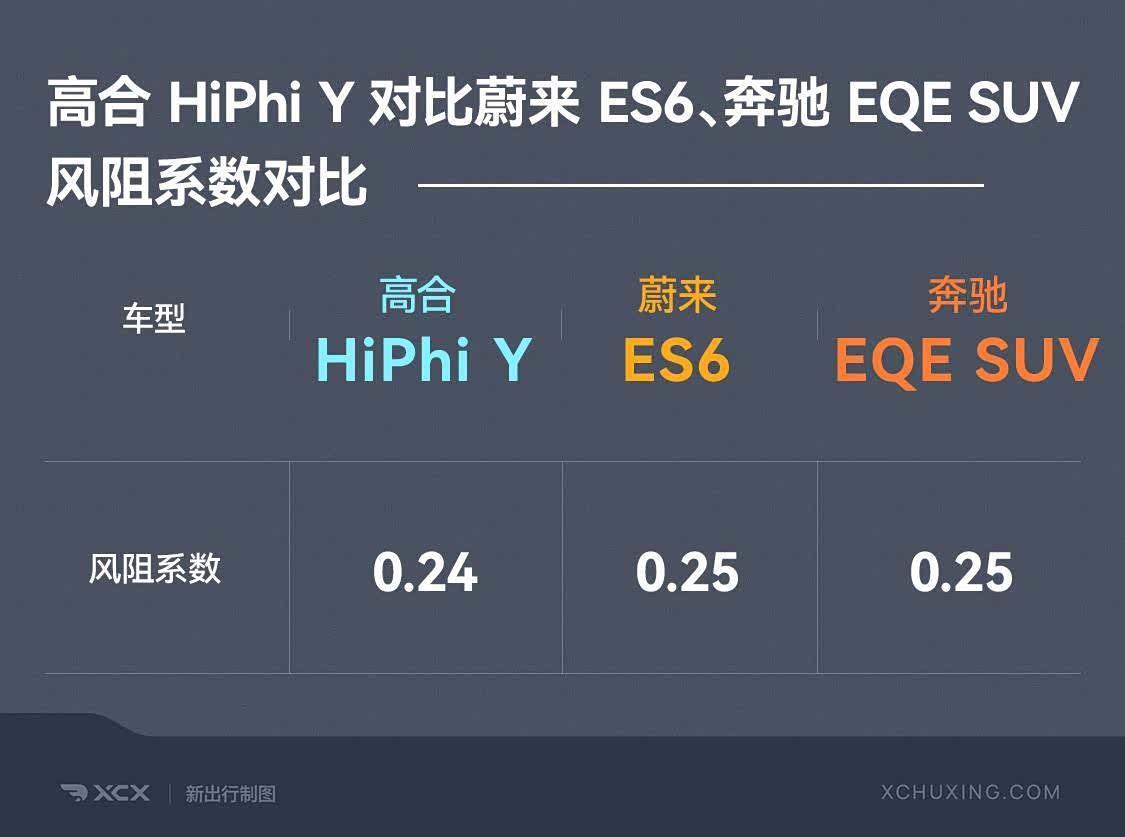 但比较意外的是,三款车型中最低风阻系数的车型不是以“润为美”的奔驰 EQE SUV,而是造型独树一帜的高合 HiPhi Y: