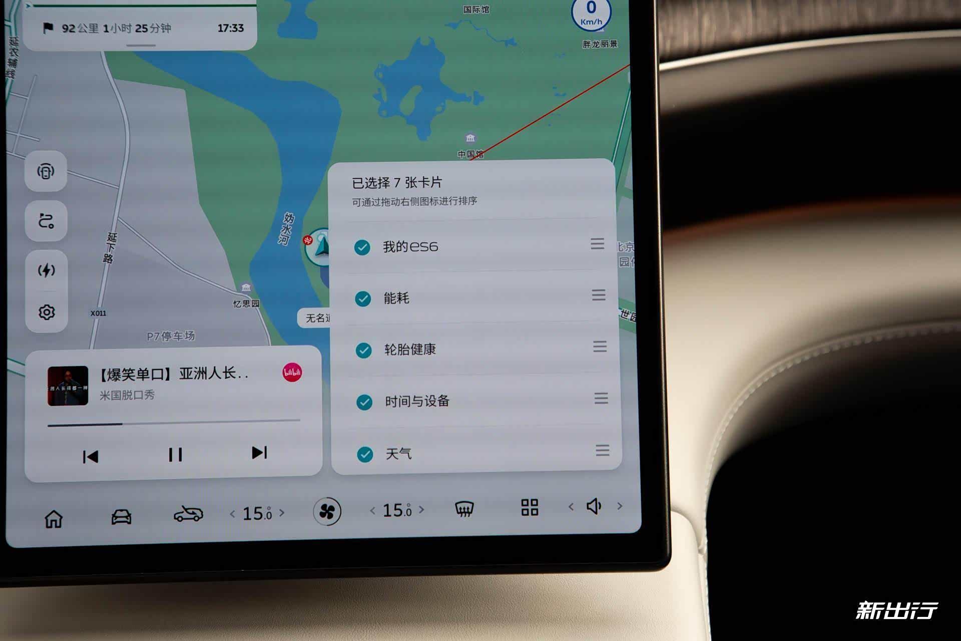 蔚来 ES6 的设计就相对会更加简洁清晰,在大地图底的设计下加入卡片组件,让其看起来清晰易懂。而奔驰 EQE SUV 同样是大地图底的设计加卡片组件,但其 UI 就是很传统的设计风格,有点“理工直男”的感觉。