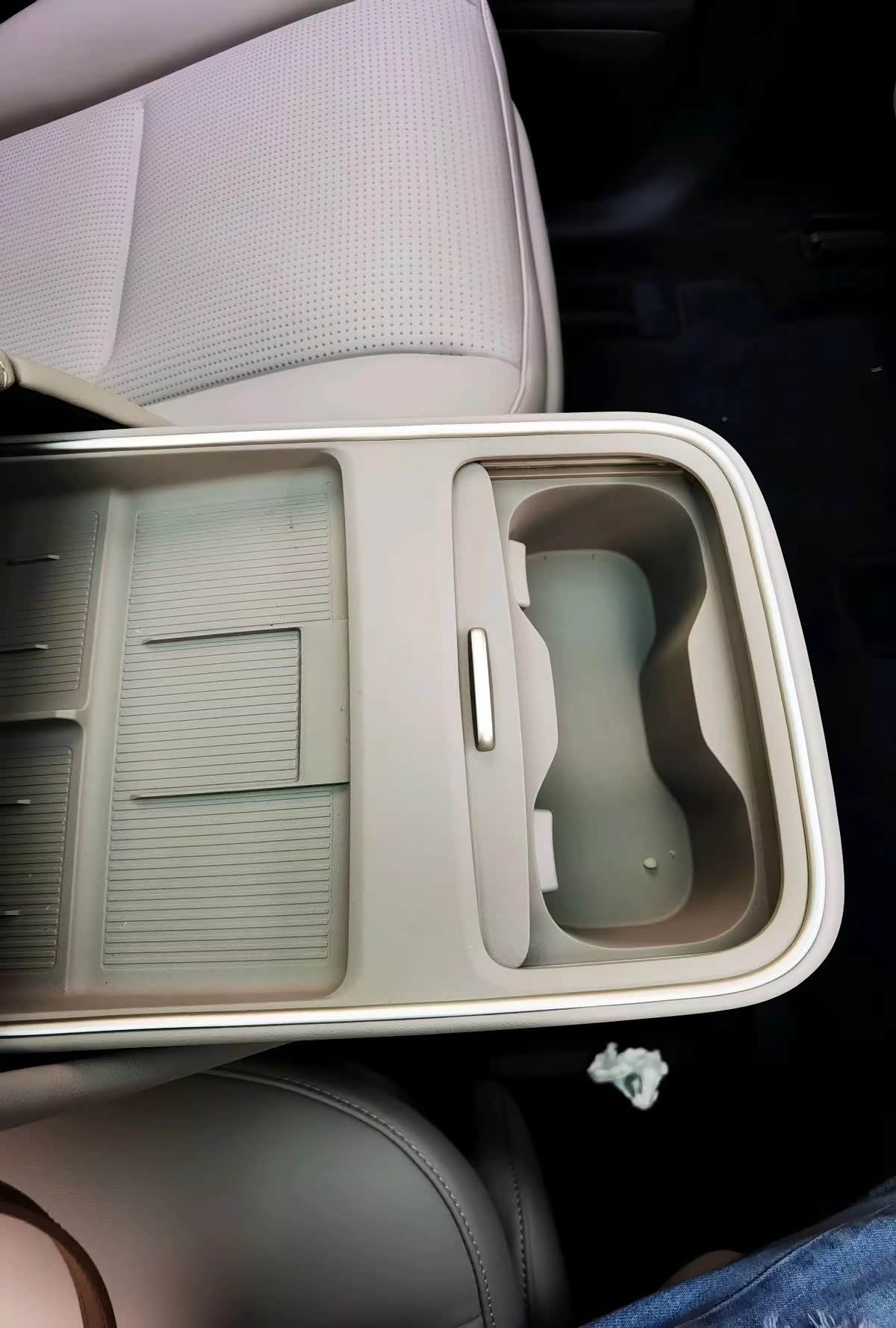 “行政中岛”是蔚来通过数字层+储物层的结合,打造的一个全新概念,数字层采用抽屉式设计,电动伸缩,前端带有2个杯托,三个手机无线充电位,其中横置充电位是NIO Phone专用。“诸物层”可选车载冰箱,内部空间为5L,可存放8听可乐。除此之外,也可选择第二排中央通道版本,保留宽敞的中央通道,也能带来更舒适的二排座椅提升。