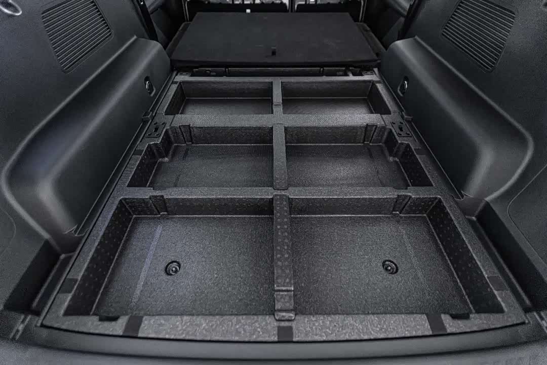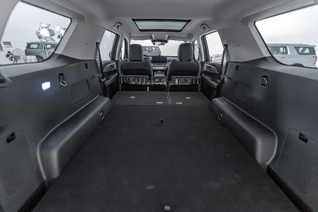 如果将二排座椅翻折放倒,你将会得到一个后备厢最大纵深(第一排)1965mm,最大容积2116L(二排放倒)的纯平装载空间。