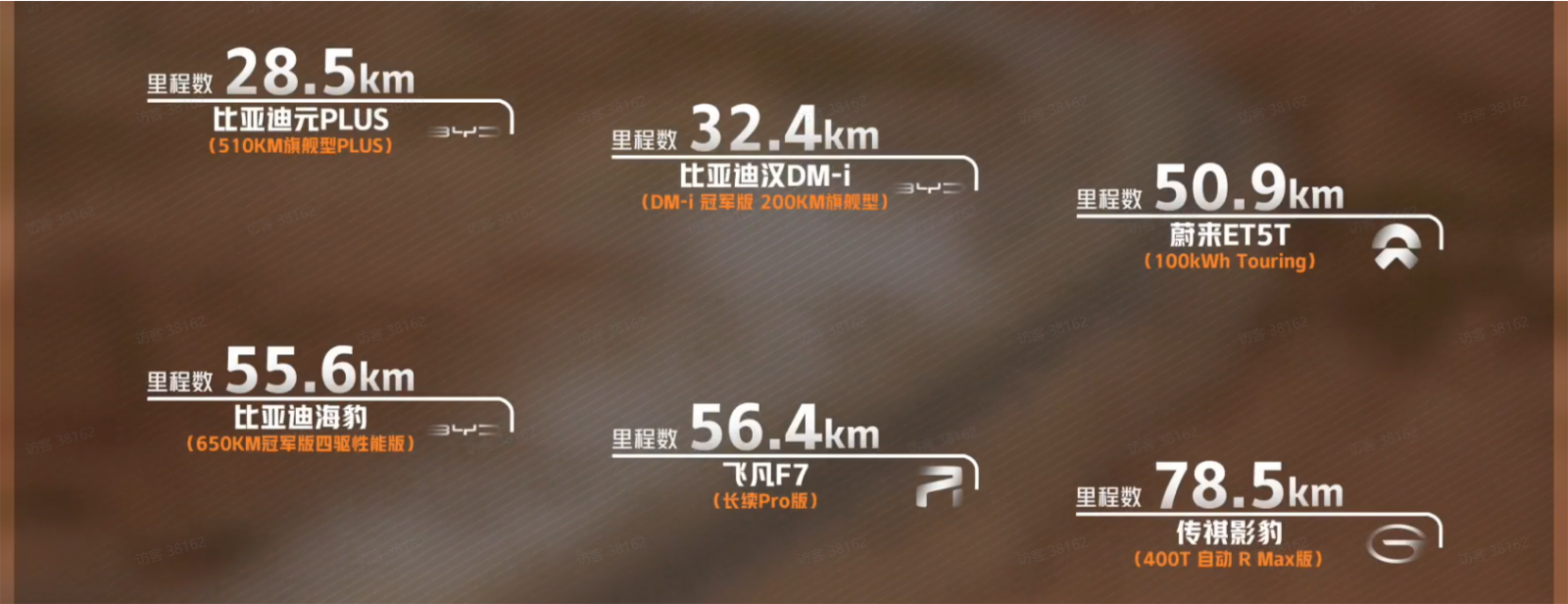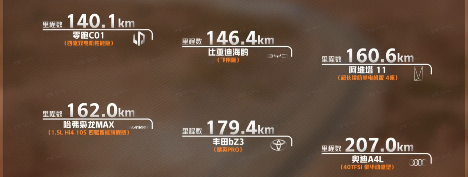 所以下面的排名也叫做“夏测强化耐久趴窝里程数”排行榜,这个排行榜很有意思。