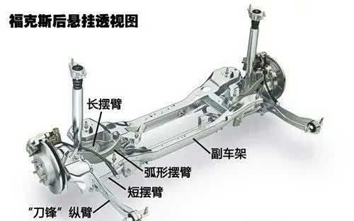 后悬挂方面,三代福克斯依然沿用了老款的“SLA Control Blade全独立悬挂(含后副车架+后防倾杆)”。这其实就是一套多连杆独立后悬挂,再加上后副车架和后防倾杆的帮助,它其实就是一套多连杆式悬架系统,其中三根横向摆臂对车轮进行定位。悬架部件的材质上依然为钢,这也与海外版的福克斯保持了一致,让福克斯的操控基本做到了打遍同级无敌手的高度。
